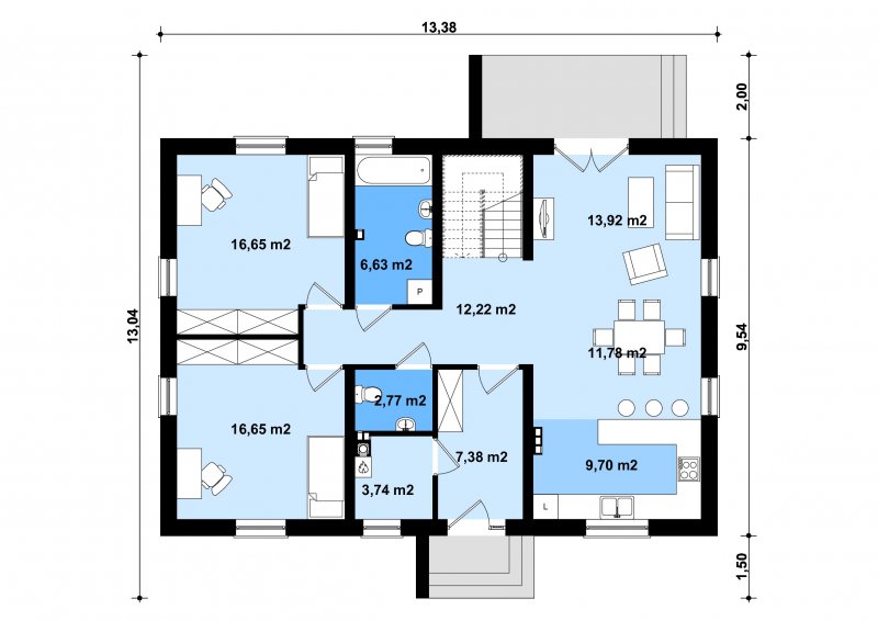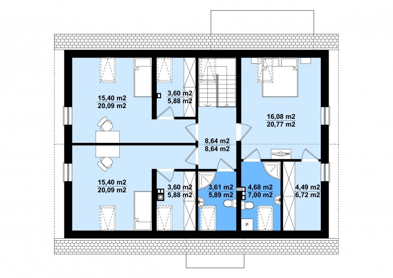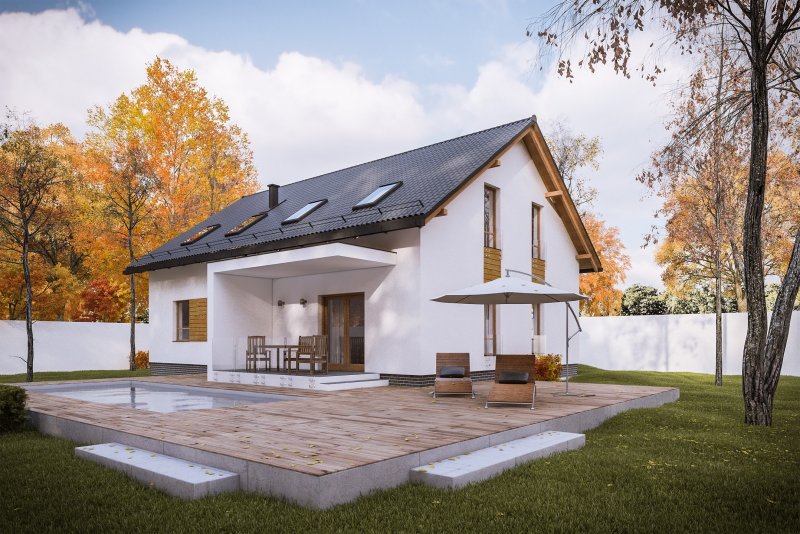 Projekt budynku mieszkalnego, jednorodzinnego, parterowego, niepodpiwniczonego z poddaszem użytkowym. Do projektu dołączone jest zestawienie: stali, więźby dachowej oraz stolarki drzwiowej i okiennej, jak równieżbezpłatna zgoda na dokonanie zmian.