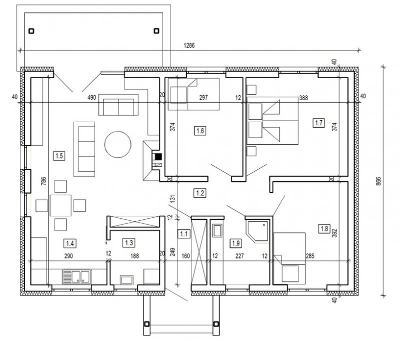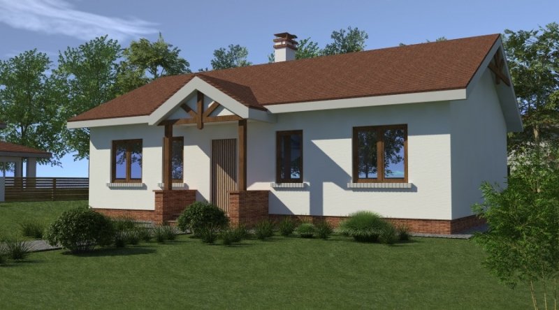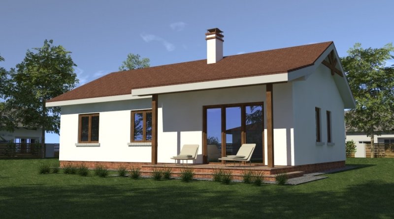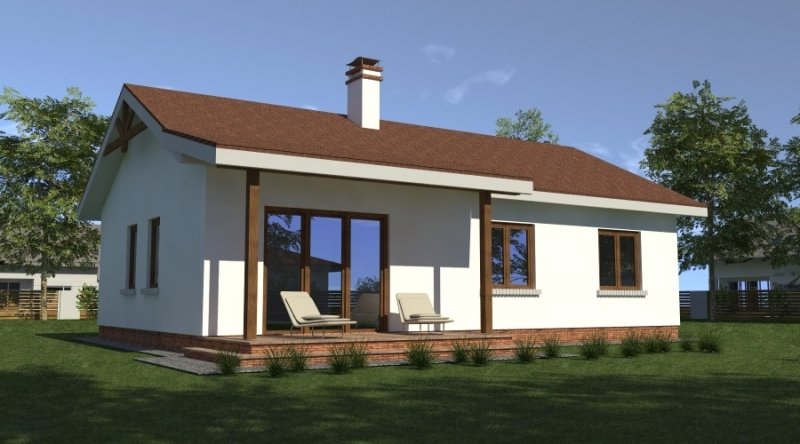 Dom parterowy o powierzchni 89.6 m2, będący alternatywą dla czteropokojowego mieszkania. Dom zaprojektowano w sposób bardzo ekonomiczny i funkcjonalny, a jego realizacja jest przewidziana systemem całkowicie gospodarczym lub pół-gospodarczym. Ujmując ściślej - jest to dom do samodzielnego wybudowania przez przyszłych domowników, nie zawiera elementów trudnych do wykonania oraz kosztochłonnych.
