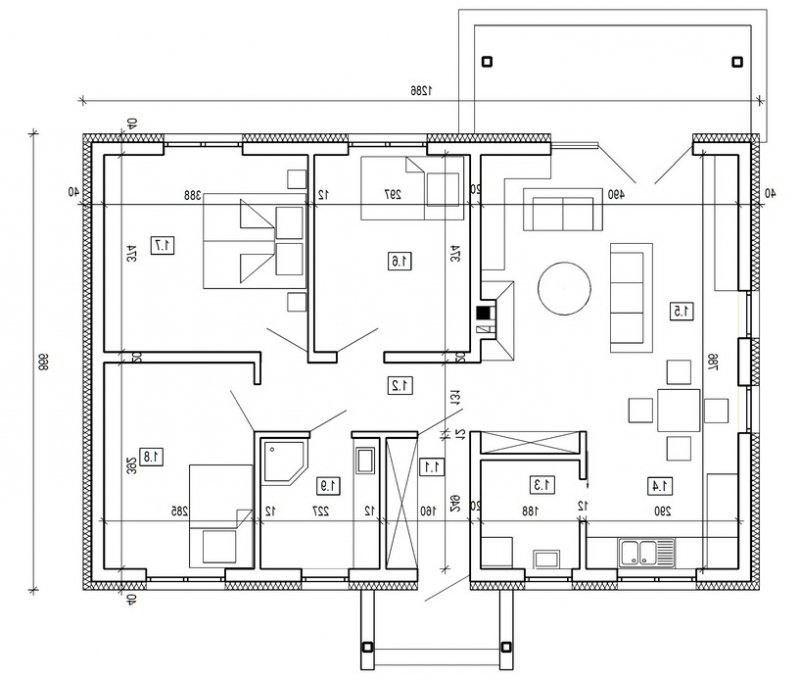 Projekt w tej wersji posiada instalację wentylacji z odzyskiem ciepła oraz zmodyfikowane grubości izolacji fundamentów, podłóg, ścian, stropów i dachu.