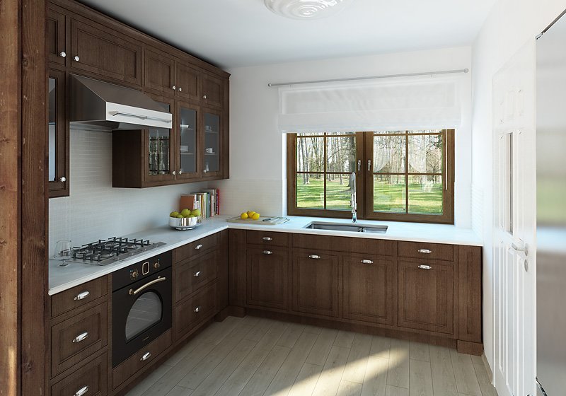 Ściany: szkielet drewniany, Stropy: belki drewniane + wełna mineralna, Dach: dachówka, kąt nachylenia 40°