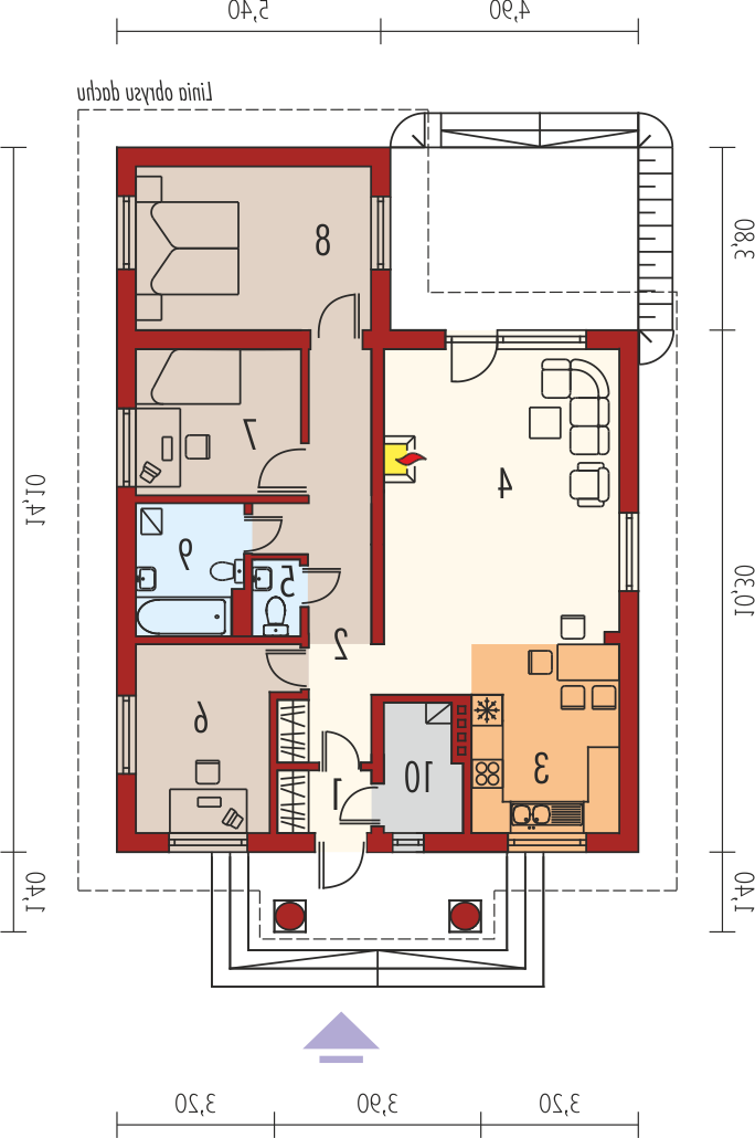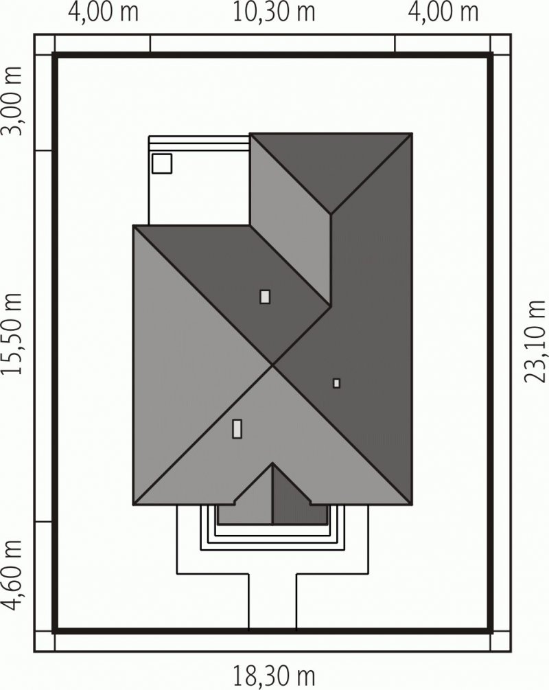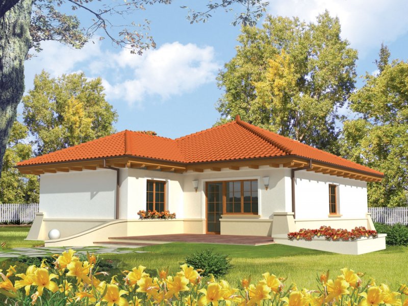 Dom parterowy, niepodpiwniczony, przeznaczony dla 2-3 osobowej rodziny, a po rozbudowie do 121 m² dla 4-5 osób. Na parterze oprócz pokoju dziennego i kuchni zaprojektowano dwie sypialnie i łazienkę. Dom można realizować w trzech etapach. Docelowo przewidziano cztery sypialnie i dwie łazienki. Prosta i funkcjonalna bryła domu oparta na rzucie kwadratu obniża koszty budowy.