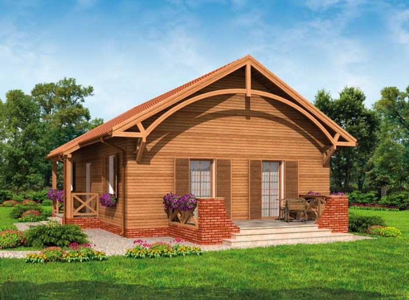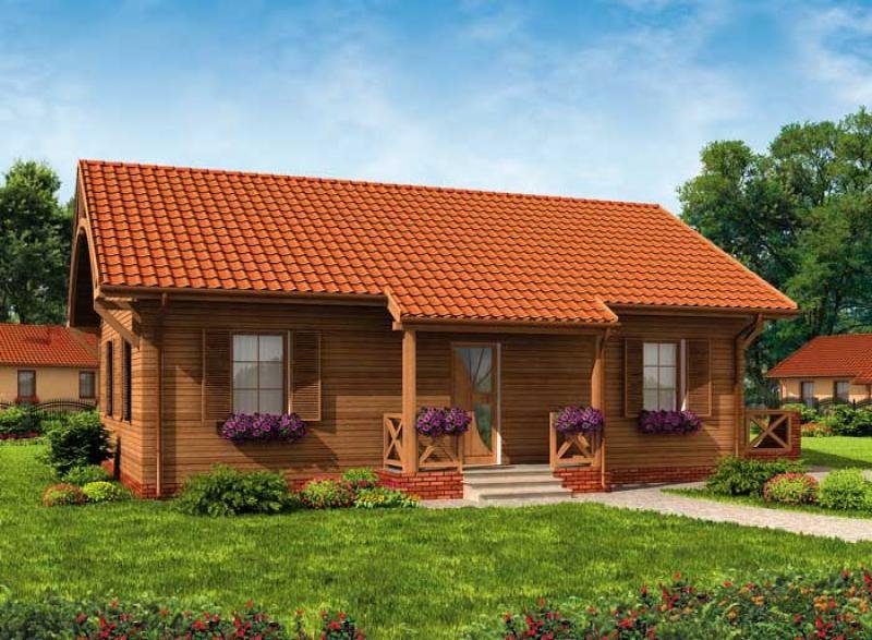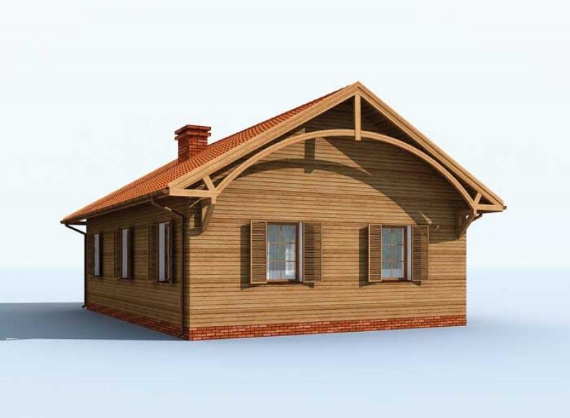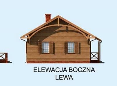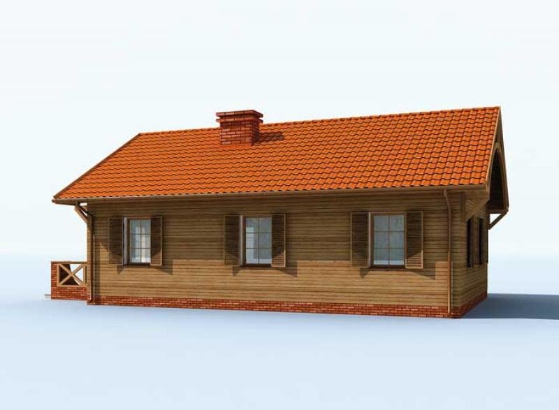 Ten projekt to wymarzona propozycja dla właścicieli działek w terenach wiejskich i górskich, ten dom znakomicie prezentuje się w podmiejskiej, prowincjonalnej scenerii. Z jednej strony swoim wyglądem może kojarzyć się ze znanymi z lektur i filmów domkami na Dzikim Zachodzie, prerii. Wrażenie to potęguje połączenie czerwonej cegły z drewnianym obiciem. Z drugiej strony, budynek jest na wskroś nowoczesny, zastosowane materiały stylizują projekt, który stonowanym wnętrzem tworzy atmosferę bezpieczeństwa i domowego ciepła. Wnętrze budynku łagodzi wrażenia jakie powstały po zapoznaniu się z zewnętrzną elewacją budynku. Prostota i praktyczne rozmieszczenie pomieszczeń nadają mu iście sielskiego klimatu. Znajdują się w nim dwie sypialnie, łazienka oraz kuchnia z pokojem dziennym prowadzącym na taras. Projekt składa się z części architektonicznej, konstrukcyjnej, wewnętrznych instalacji wod.-kan, c. o. , gaz. i elektrycznej. W projekcie załączone są podstawowe zestawienie stali, drewna i stolarki okienno-drzwiowej. Do projektu dołączamy bezpłatną zgodę na wprowadzenie zmian, oświadczenie projektantów o wykonaniu projektu zgodnie z obowiązującymi normami i przepisami oraz kserokopie uprawnień projektantów wraz z aktualnym wpisem do izby. W przypadku zamówienia projektu w technologii lekkiej, drewnianej konstrukcji szkieletowej, powierzchnia użytkowa budynku jest o około 7% większa.