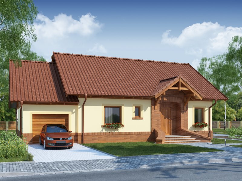 Eliasz PS jest zaprojektowany z myślą o 3 osobowej rodzinie. Ma klasyczną prostą formę, co korzystnie wpływa na oszczędność związaną z ogrzewaniem domu oraz samą jego budową.