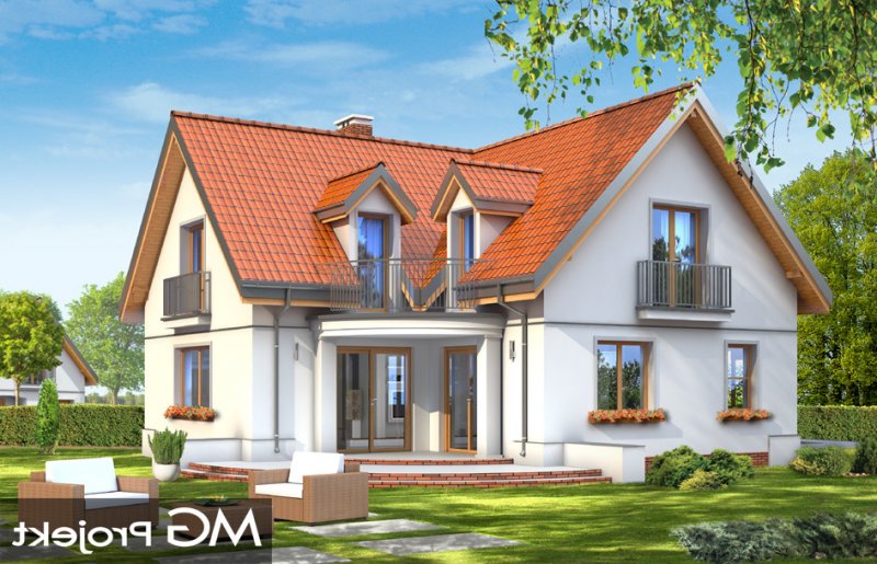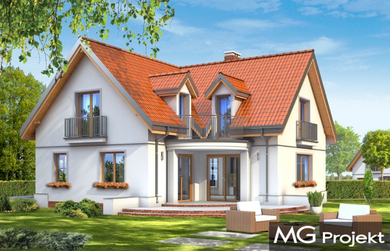 Elka to budynek jednorodzinny przewidziany dla rodziny cztero-pięcioosobowej. Parterowy budynek z poddaszem użytkowym, z wbudowanym w bryłę garażem jednostanowiskowym. Dom ma rzut w kształcie litery "L" i przykryty jest dwuspadowymi symetrycznymi dachami. Bryła budynku tworzy intymny zakątek tarasowy od strony ogrodu - częściowo zadaszony. Tradycyjna forma domu w połączeniu z oszczędnym współczesnym detalem tworzą spójne, bardzo proporcjonalne elewacje zewnętrzne. Podcień drzwi frontowych, oraz balkony i lukarny urozmaicają bryłę. Duże przeszklone otwarcia wnętrza na taras zapewnią dobre doświetlenie i kontakt wnętrza z ogrodem. Na parterze zaprojektowano jednoprzestrzenne wnętrze dzienne, z wyodrębnionym salonem, jadalnią, holem i częściowo zamkniętą kuchnią. W projekcie przewidziano również garaż i kotłownię. Na poddaszu miejsce znalazły trzy duże sypialnie, z garderobami, oraz obszerna łazienka. Pracownia posiada również wariant projektu w odbiciu lustrzanym.