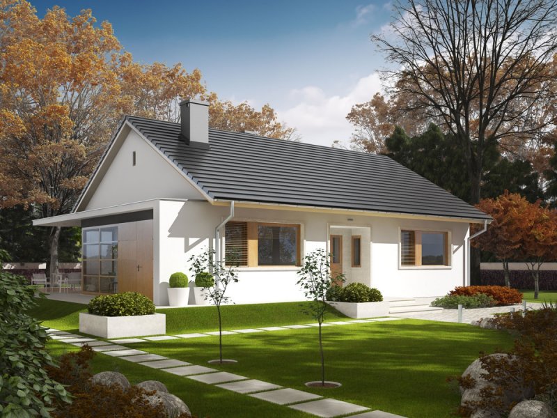 Emi MULTI-COMFORT to dom zaprojektowany w duchu nowoczesnej prostoty. Strefa wejściowa czaruje swoją symetrią i elegancją. Zgrabną bryłę budynku otula szykowna elewacja. Wnętrze domu wyróżnia ergonomiczny i funkcjonalny charakter. Na szczególną uwagę zasługuje wygodny, słoneczny salon, harmonijnie połączony z jadalnią. Emi to doskonała propozycja dla inwestorów, którzy marzą o przytulnych przestrzeniach z nowoczesnym pazurem.
