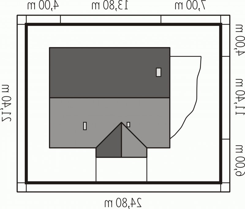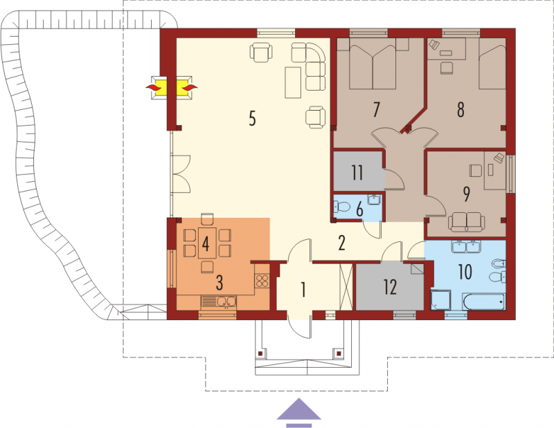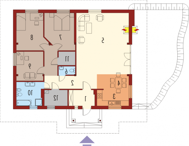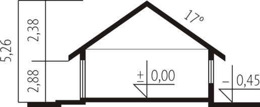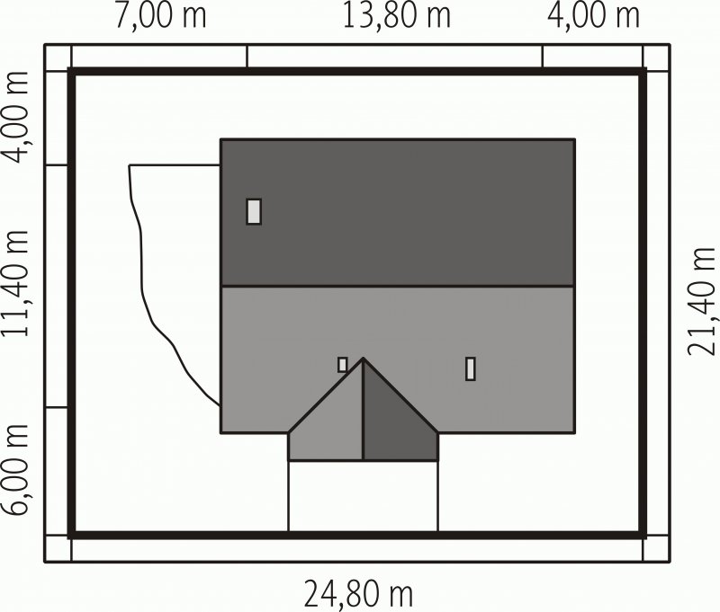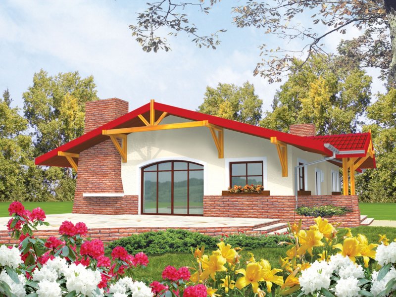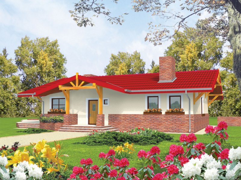 Dom parterowy, niepodpiwniczony, przeznaczony dla 3-4-osobowej rodziny. Strefa nocna mieści niewielkie sypialnie; strefę dzienną stanowi duża, otwarta przestrzeń przeznaczona do dowolnej aranżacji. Istnieje możliwość rezygnacji z podwieszonego sufitu nad pokojem dziennym, co pozwoli na odsłonięcie połaci i ukazanie ciekawej konstrukcji dachu.