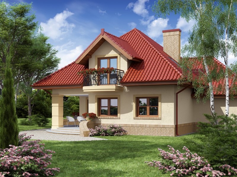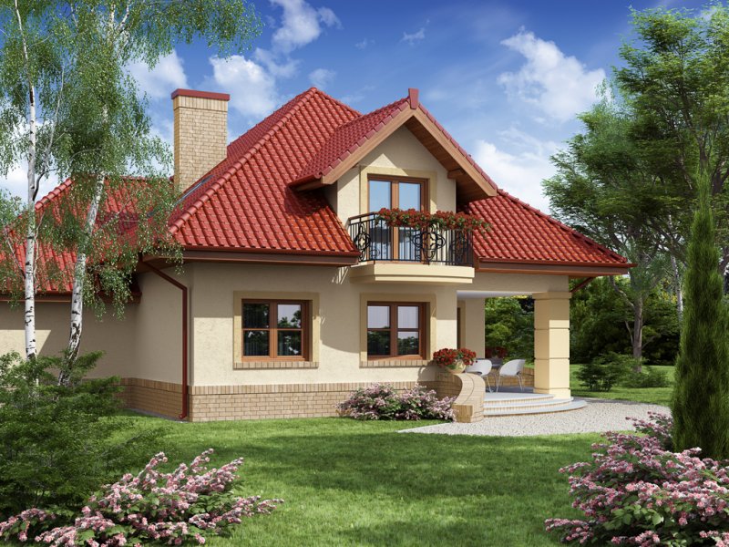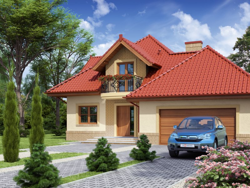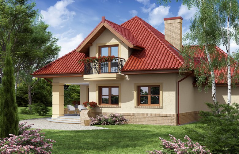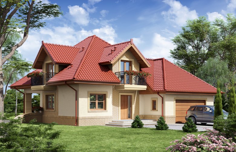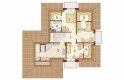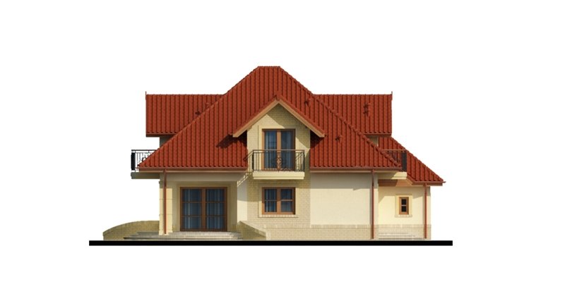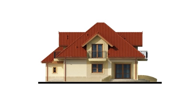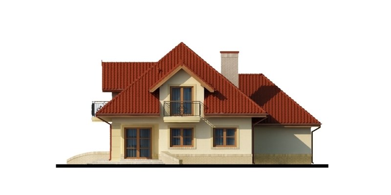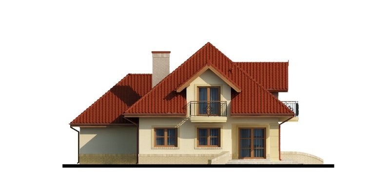 Dom z poddaszem użytkowym ucieszy przestronnością oraz funkcjonalnością pomieszczeń. Zaprojektowany z myślą o 4-osobowej rodzinie. Szczególnie zainteresuje właścicieli wąskich działek, którzy jednak chcą posiadać dwustanowiskowy garaż. Praktycznie rozplanowana powierzchnia wiatrołapu oraz hallu pozwoli na wkomponowanie dodatkowych szaf pod zabudowę. Kuchnia, jadalnia oraz salon to otwarta przestrzeń. Dzięki temu domek zyskuje dodatkową powierzchnię, a także ułatwia przemieszczanie się do poszczególnych pomieszczeń. Przestronność domu to również dodatkowy walor przy organizowaniu prywatnych spotkań towarzyskich z rodziną i przyjaciółmi. Poddasze stanowi strefę nocną domu. Znajdziemy tam obszerną łazienkę z miejscem na wannę, kabinę prysznicową i część na pralkę oraz trzy pokoje sypialnie. Wyjątkową cechą każdego z pokoi jest dostęp do prywatnej garderoby, a sypialnia małżeńska ma również swoją łazienkę. Takie rozwiązanie to nie lada zaleta dla rodzin z dorastającymi dziećmi.