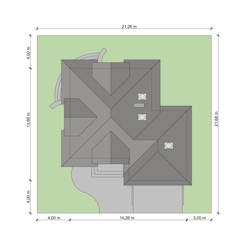 - Min. wymiary działki 21.26x21.68 m