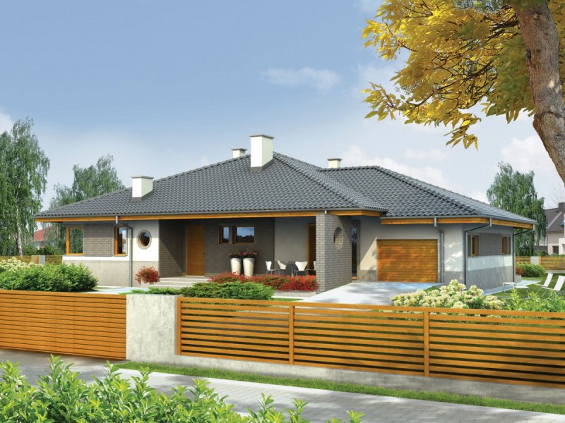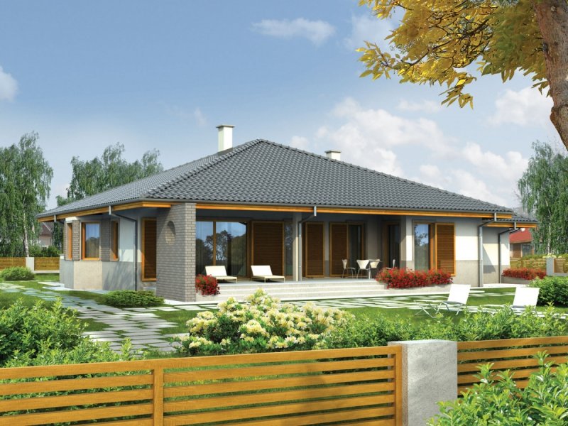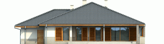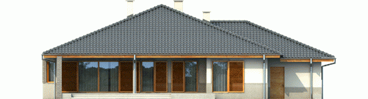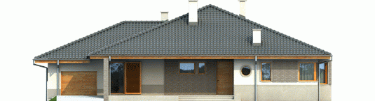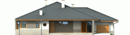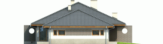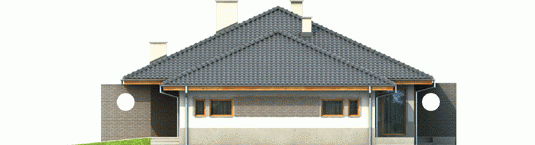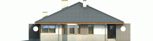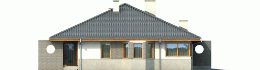 Dom zaprojektowany w technologii murowej ze stropem gęstożebrowym. Dach o konstrukcji drewnianej pokryto dachówką ceramiczną. Stolarka okienna drewniana lub PCV. Więźba dachowa dostępna również w systemie prefabrykacji drewnianej. Elewacja wykończona tynkiem mineralnym oraz okładziną klinkierową. Stolarka okienna drewniana lub PCV.