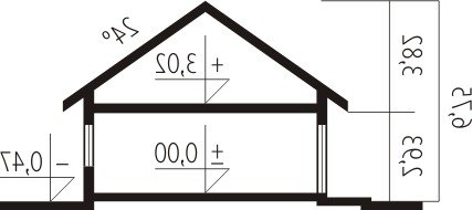- Kąt nachylenia dachu 24.50°