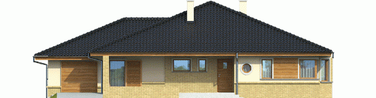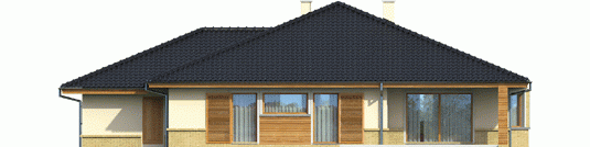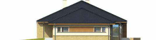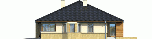 Dom zaprojektowany w technologii murowej ze stropem gęstożebrowym. Dach o konstrukcji drewnianej pokryty dachówką ceramiczna lub cementową. Więźba dachowa dostępna również w systemie prefabrykacji drewnianej. Elewacje wykończono tynkiem mineralnym, okładziną drewnianą oraz klinkierową. Cokół wykończono cegłą klinkierową. Stolarka okienna drewniana lub PCV.