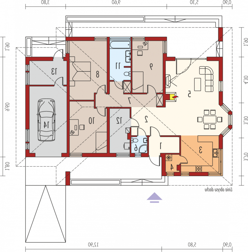 - Kąt nachylenia dachu 22.00°