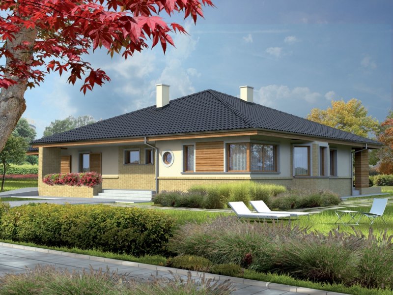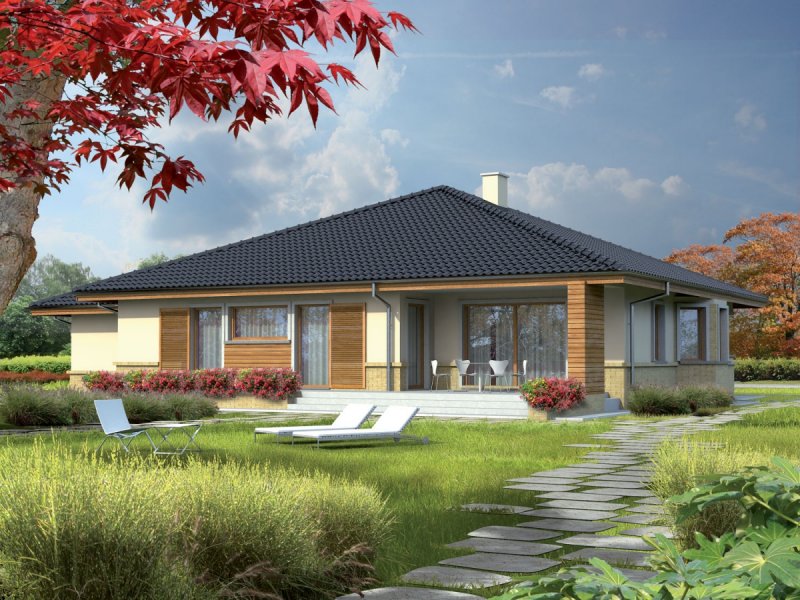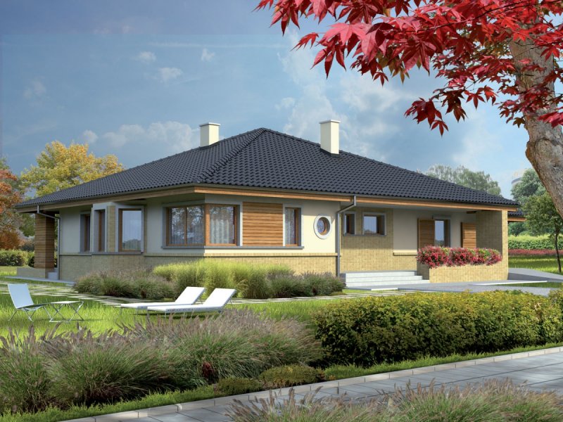 Dom „Flori G1” to klasyczny dom parterowy nawiązujący do tradycji. Ogromnym atutem „Flori” jest przestronna strefa dzienna – rozświetlona promieniami słońca, które swobodnie przenikają do wnętrza domu. Wygodny salon z kominkiem, duża kuchnia ze spiżarnią, jadalnia, czy praktyczne pomieszczenie gospodarcze oprócz komfortu zapewniają swobodę komunikacji. Strefa nocna to dwa pokoje, sypialnia, a także dwie łazienki. Atrakcyjnym elementem domu jest przytulny, szeroki taras, który kreuje przestrzeń idealną dla miłośników wypoczynku blisko domu i blisko przyrody zarazem. Istnieje możliwość adaptacji poddasza. Dom „Flori” spełni oczekiwania wszystkich, którzy cenią klasyczny szyk i funkcjonalne piękno. Dom dostępny także w wersji bez garażu lub z garażem dwustanowiskowym. Istnieje możliwość zmiany kąta nachylenia dachu do 30° oraz adaptacji poddasza na strych.