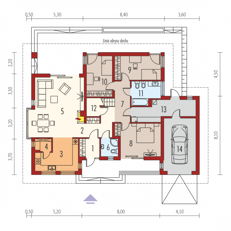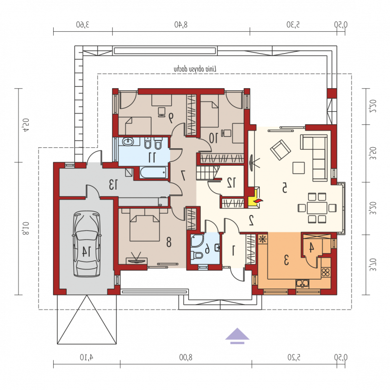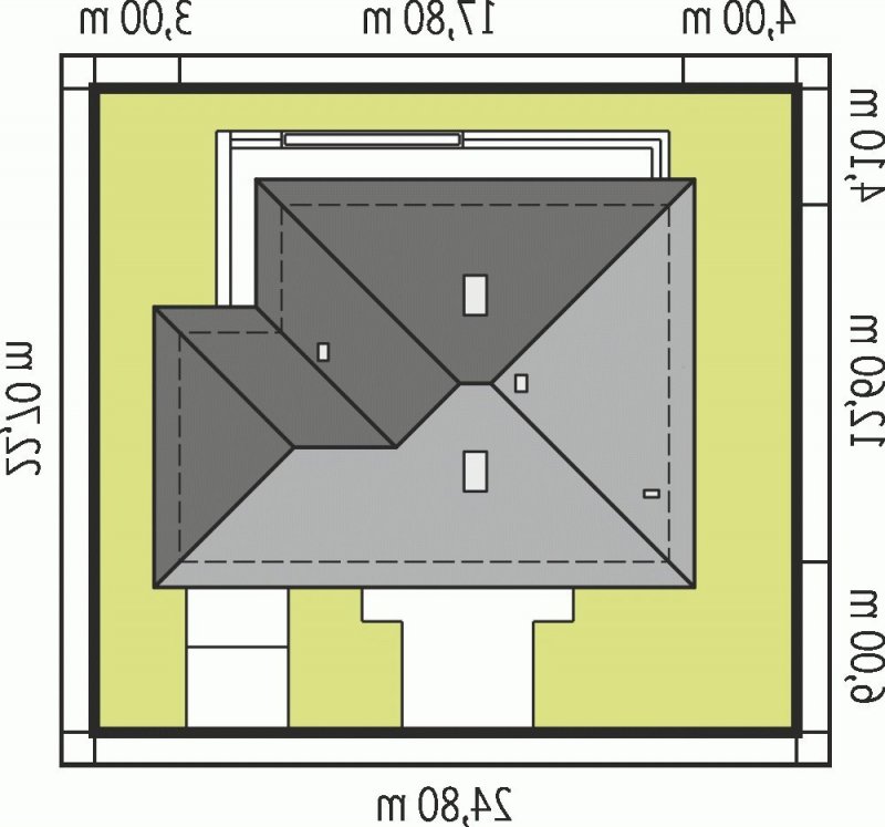 - Kąt nachylenia dachu 22.00°