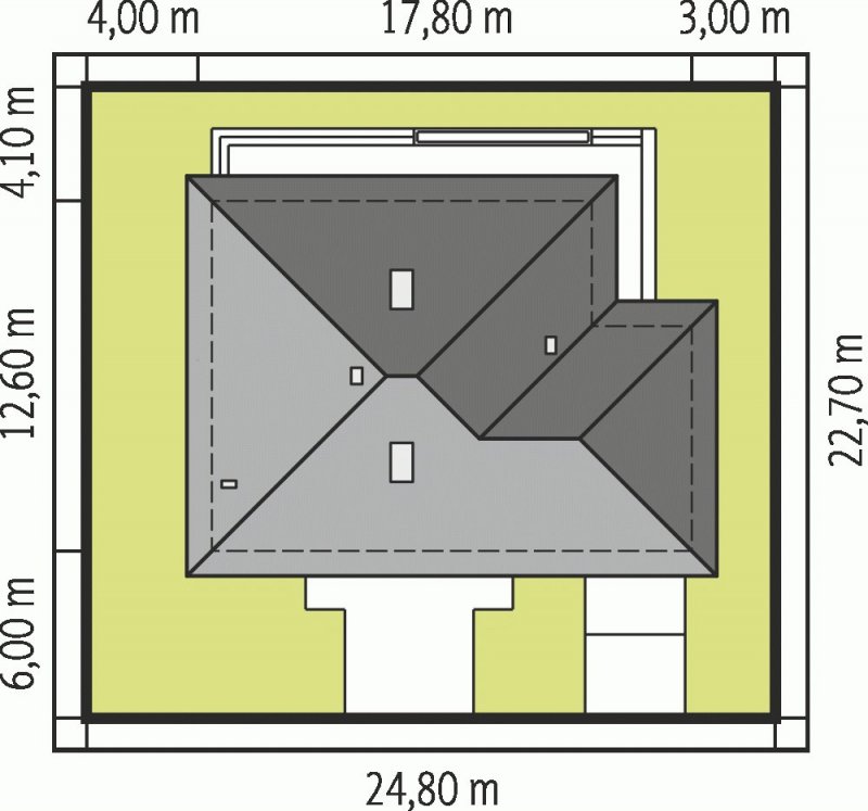 - Min. wymiary działki 24.80x22.70 m
