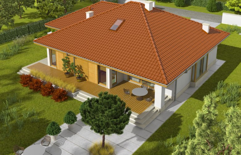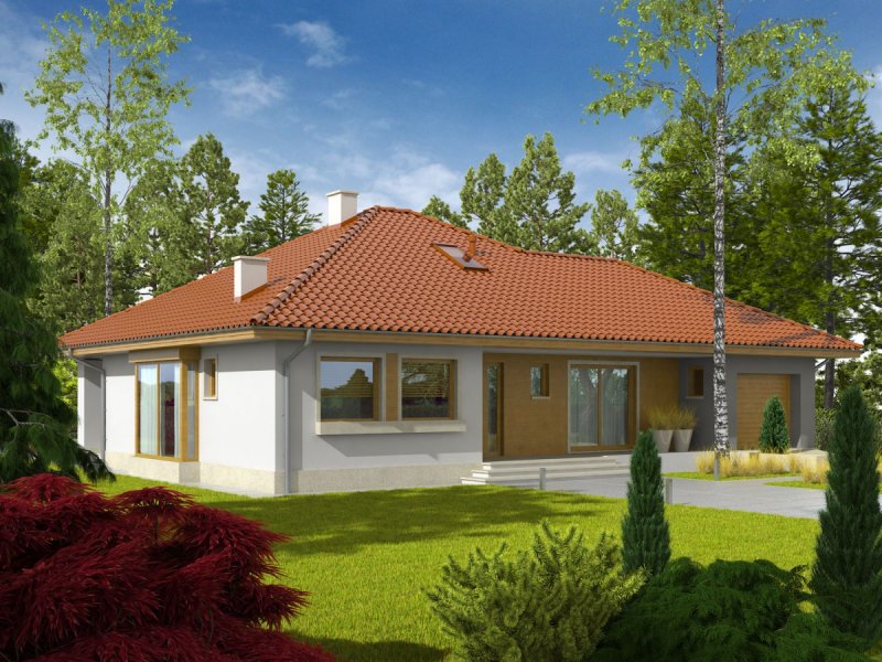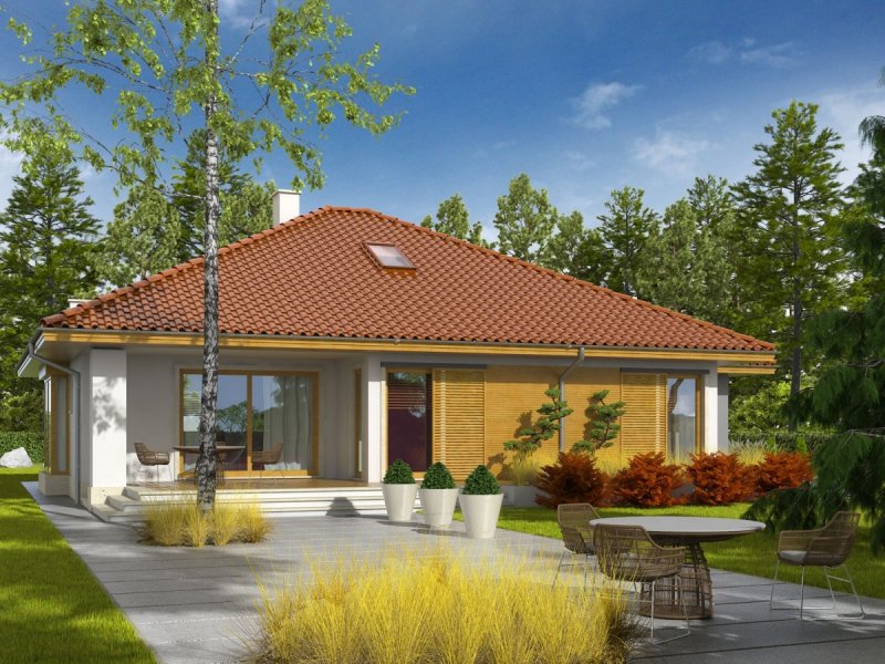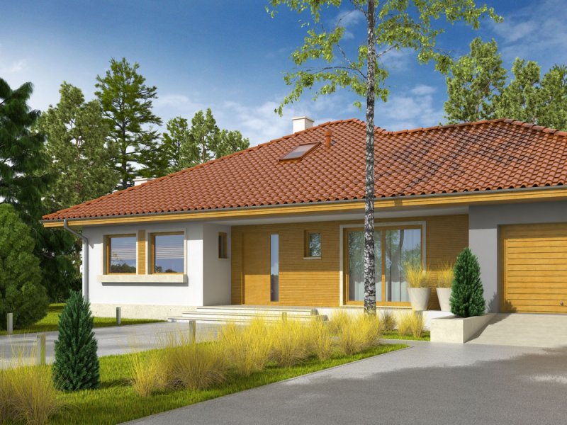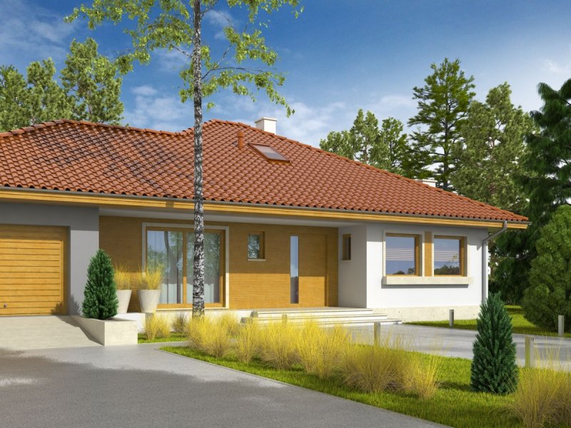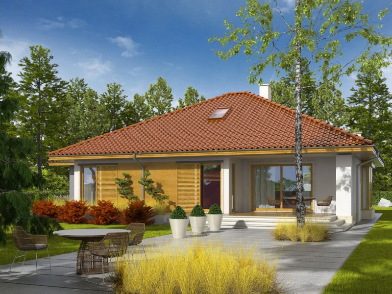 Dom parterowy, niepodpiwniczony, z garażem jednostanowiskowym. Przeznaczony dla 3-4-osobowej rodziny. W strefie dziennej znajdują się salon z kominkiem, jadalna oraz kuchnia ze spiżarnią. Znalazła się tu również łazienka oraz duże pomieszczenie gospodarcze. Strefę nocną tworzą trzy sypialnie oraz wygodna łazienka. W holu zaprojektowano schody prowadzące na praktyczny strych. Flori III G1 to klasyczna elegancja, która prezentuje się efektownie w każdym otoczeniu. Duża ilość przeszkleń sprawia, że do wnętrza domu swobodnie przenika naturalne światło. Prostą bryłę budynku akcentuje ciekawa gra kolorów i materiałów, zastosowanych na elewacji – ascetyczna biel tynku została przełamana szarością i ciepłym dotykiem drewna, dodając całości intrygującego wdzięku. Flori III G1 spełni oczekiwania miłośników funkcjonalnej wygodny i nowoczesnych kompozycji. Istnieje możliwość: - podpiwniczenia - zbliźniaczenia - wykonania domu dwulokalowego - zmiany kąta nachylenia dachu do 30°