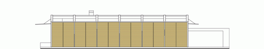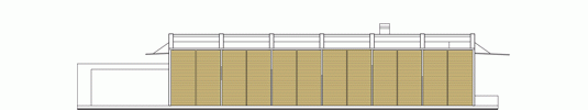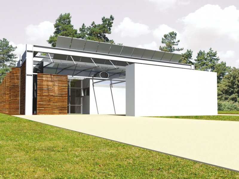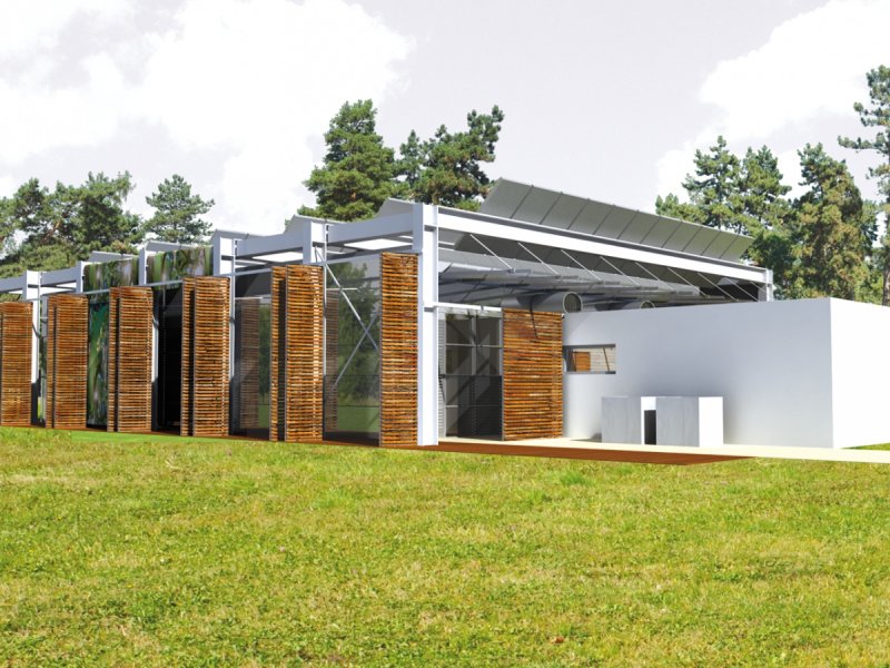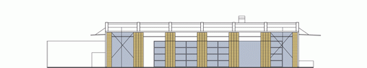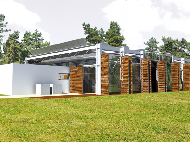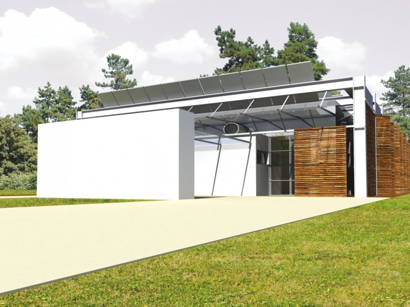 Budynek został zaprojektowany w konstrukcji ram stalowych oraz lekkich ścian osłonowych. Elewację wykończono tynkiem mineralnym oraz żaluzjami drewnianymi. Ślusarka okienna aluminiowa.