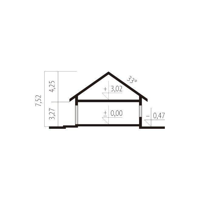 Dom zaprojektowany w technologii murowej ze stropem gęsto żebrowym. Schody wewnętrzne drewniane. Dach o konstrukcji drewnianej pokryty dachówką cementową IBF. Elewacje wykończono tynkiem mineralnym i okładziną drewnianą, cokół kamienny. Stolarka okienna drewniana lub PCV.