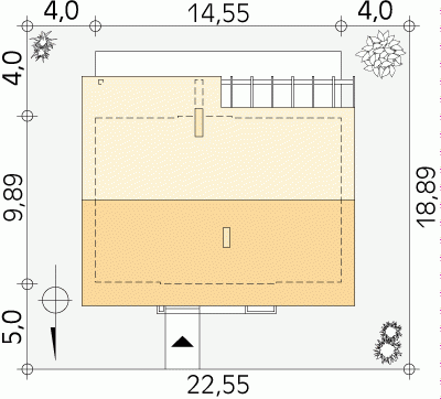 - Min. wymiary działki 22.55x18.89 m