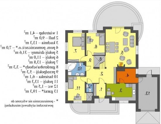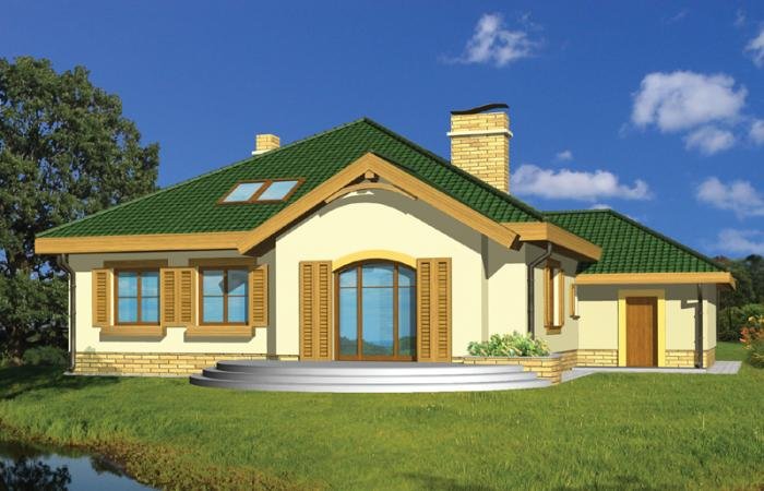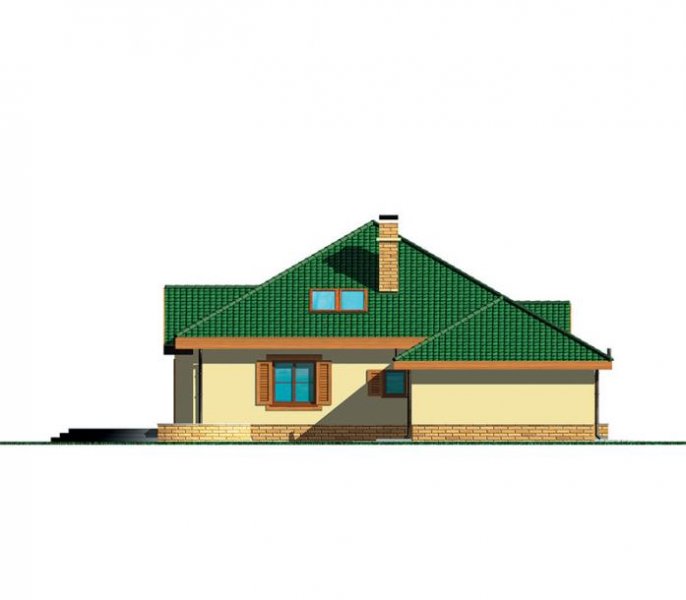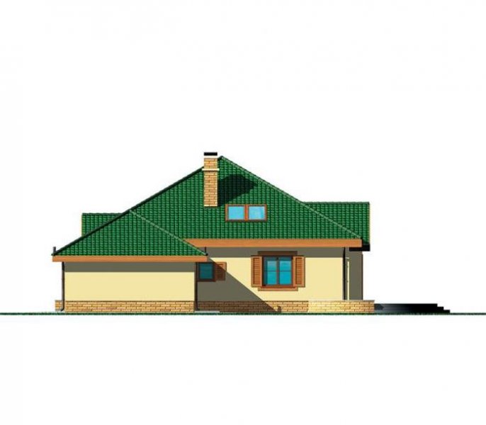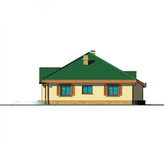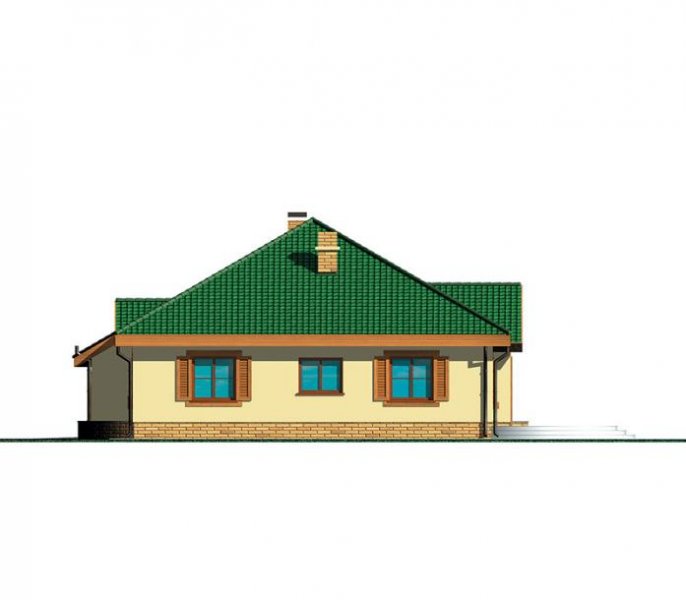Wygodny parterowy domek z funkcjonalnym i rozkładowym układem pomieszczeń. Trzy sypialnie i łazienka stanowią strefę nocną, natomiast do strefy dziennej należy przestronna kuchnia i piękny salon z kominkiem, którego ciepło może być wykorzystane do ogrzania całego domu. Duża kotłownia daje możliwość zastosowania różnego rodzaju opału. Kolejną zaletą tego domu jest to, że możemy powiększyć jego powierzchnię o 39 m2 adaptując poddasze.