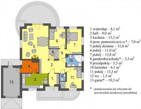 Dostępny w wersji z garażem i bez garażu oraz w lustrzanym odbiciu. Dom można zestawić w bliźniaka.