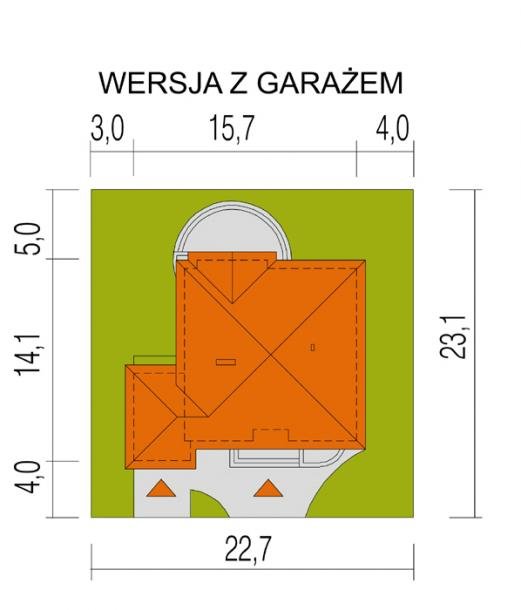 - Min. wymiary działki 23.50x22.70 m