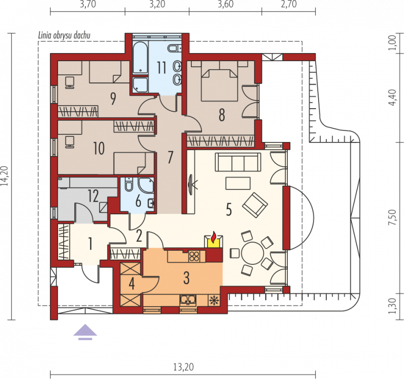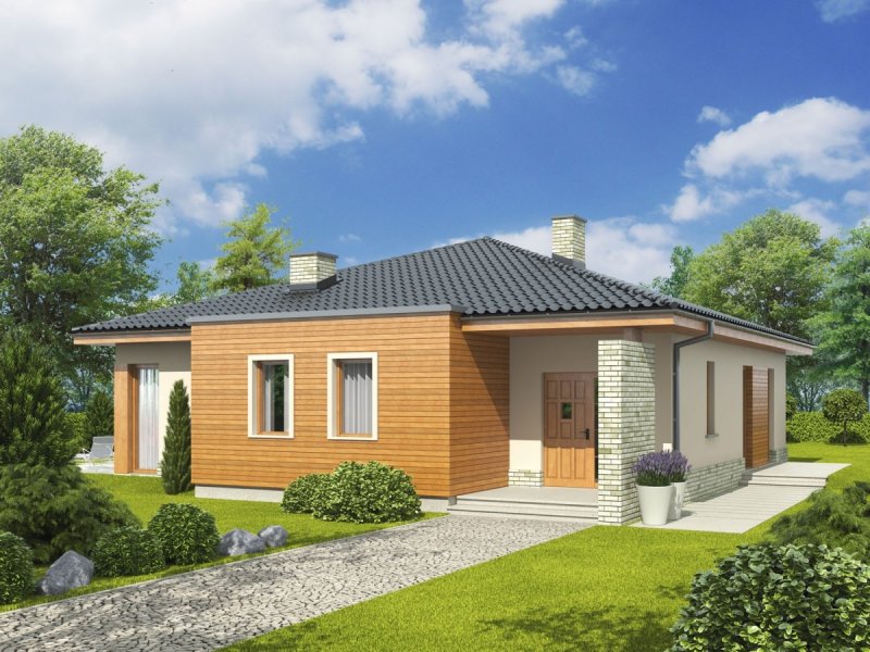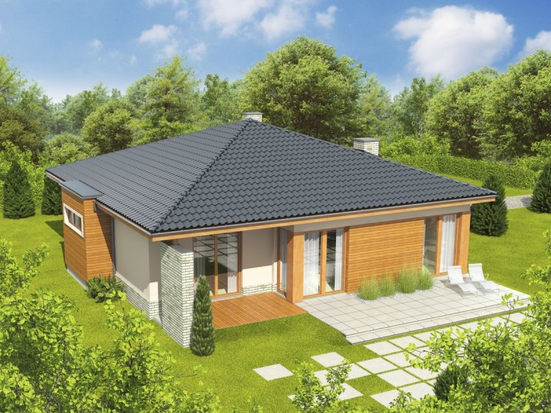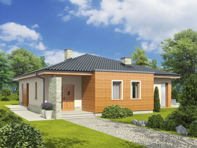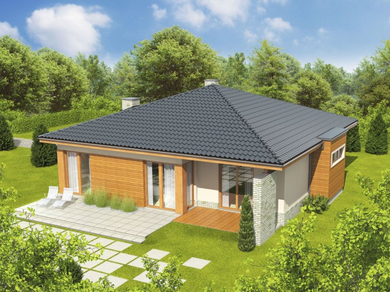 Dom parterowy, niepodpiwniczony. Przeznaczony dla 3-4-osobowej rodziny. W strefie dziennej znajdują się salon z kominkiem, jadalnia oraz kuchnia ze spiżarnią. Znalazła się tu również łazienka oraz pomieszczenie gospodarcze. Strefę nocną tworzą trzy sypialnie i wygodna łazienka. Grzegorz to propozycja dla inwestorów, którzy cenią przestrzeń i wygodę. Funkcjonalne wnętrze zapewnia swobodę komunikacji. Na szczególną uwagę zasługuje nastrojowy kominek, zaplanowany na przecięciu kuchni, jadalni oraz salonu. Grzegorz posiada imponujący wygląd zewnętrzny – mikstura tynku i słonecznego drewna harmonijnie łączy się z ciekawie zaprojektowanymi podcieniami, zdobiącymi strefę wejściową oraz część tarasu. Narożniki budynku zostały pomysłowo zaakcentowane ściankami z klinkieru, dodając domowi nowoczesnego szyku. Istnieje możliwość: - zmiany kąta nachylenia dachu do 30º oraz adaptacji poddasza na strych