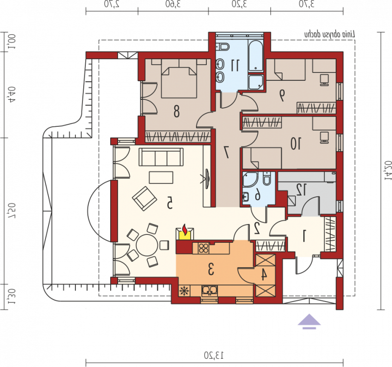 - Kąt nachylenia dachu 20.00°