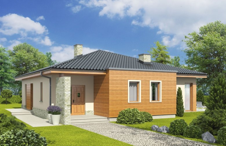 Dom zaprojektowany w technologii murowej ze stropem gęstożebrowym. Dach o konstrukcji drewnianej pokryty dachówką ceramiczną Röben. Elewacje wykończono tynkiem mineralnym, okładziną kamienną oraz drewnianą. Stolarka okienna drewniana lub PCV. Rolety zewnętrzne naokienne w systemie CleverBox firmy BeClever.