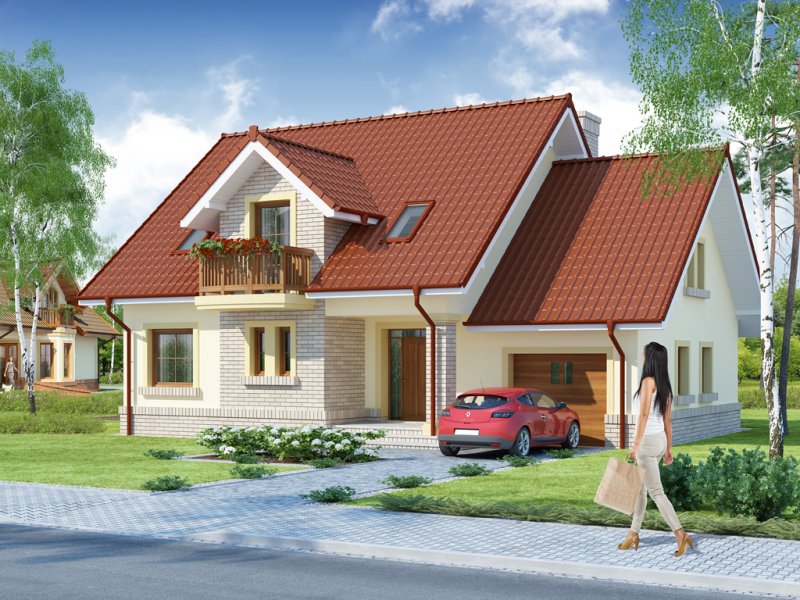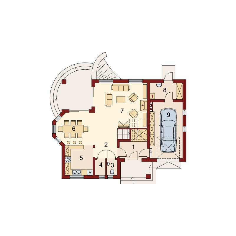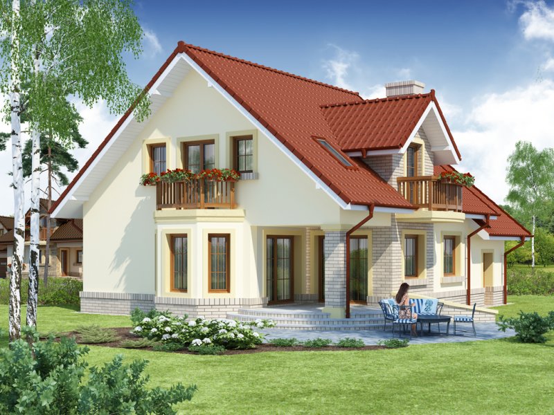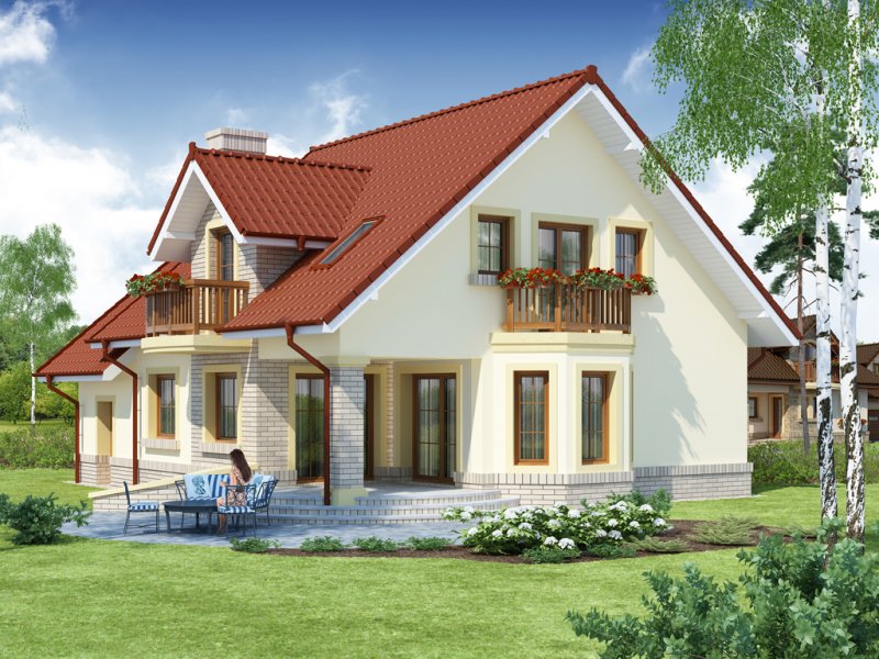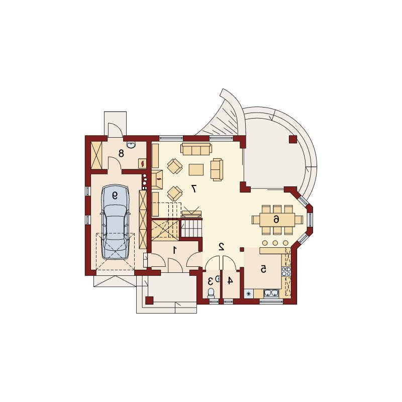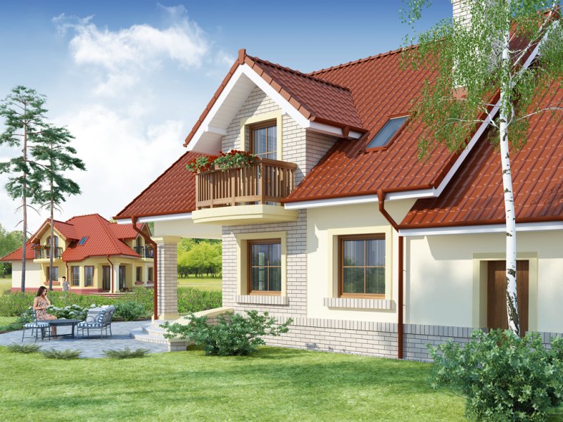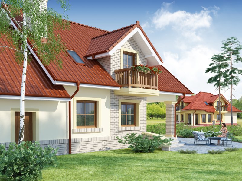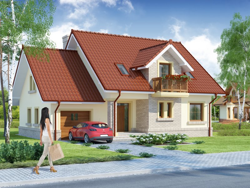 Hektor, to ekonomiczny dom dla 4 osobowej rodziny zaprojektowany na planie prostokąta wzbogaconego o przeszklony wykusz, wcięcie tarasu oraz praktyczny podcień. Stanowiąca jednorodną przestrzeń część dzienna na parterze mieści salon z kominkiem, umiejscowioną w wykuszu jadalnię i kuchnię z barkiem. Wykorzystując słup kuchnię można zamknąć ścianką działową tworząc odrębne pomieszczenie. Obok kuchni znajduje się spiżarnia, a za nią pomieszczenie wc. Można zrezygnować ze spiżarki powiększając wc i projektując tam łazienkę. W części gospodarczej parteru mamy jednostanowiskowy garaż z miejscem na ciąg praktycznych regałów, czy szaf oraz pomieszczenie gospodarcze/kotłownię z wyjściem od strony ogrodu. Poddasze, to strefa nocna, w której zaplanowano dwie sypialnie z garderobami i jedna z obszerną szafą wnękową oraz optymalnej wielkości łazienkę. Nieużytkową w projekcie przestrzeń strychu można zaadaptować na pokój hobby, czy zabaw dla dzieci.