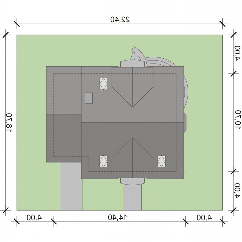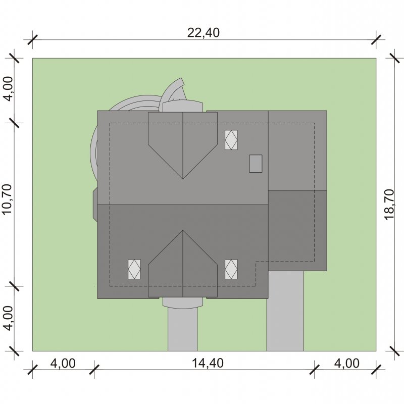 - Min. wymiary działki 22.40x18.70 m