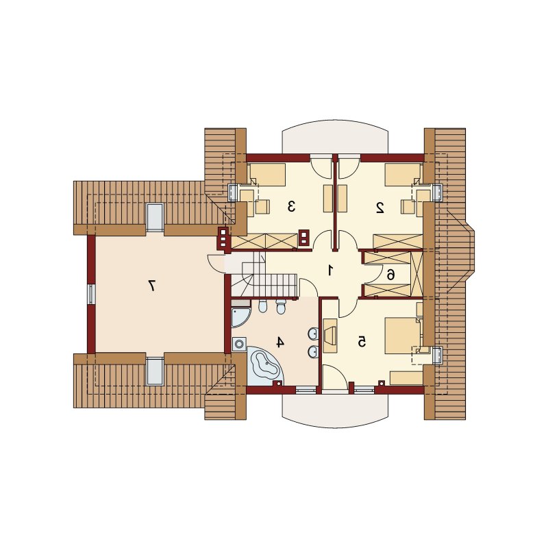 W zależności od indywidualnych potrzeb - powierzchnię użytkową domu można dodatkowo zwiększyć przekształcając zlokalizowany nad garażem strych na pokój hobby czy siłownię -korzystając z zaprojektowanego doświetlenia tego pomieszczenia oknami połaciowymi i oknem w ścianie szczytowej. Możliwe jest również proste wydzielenie tam niezależnego pomieszczenia pralni.