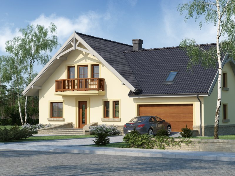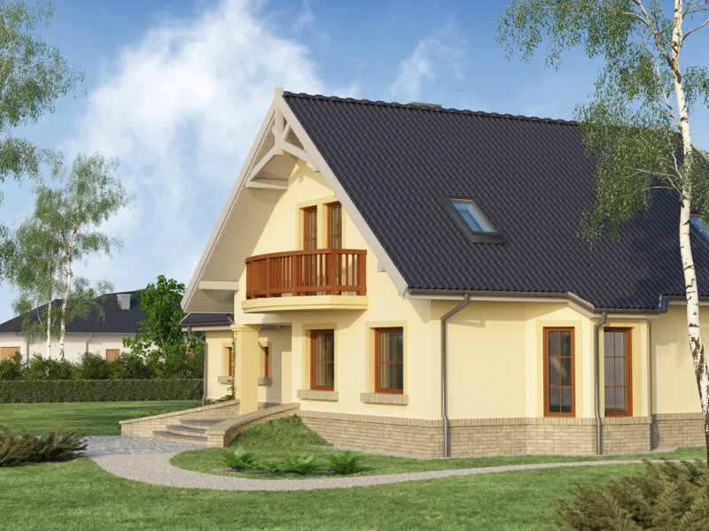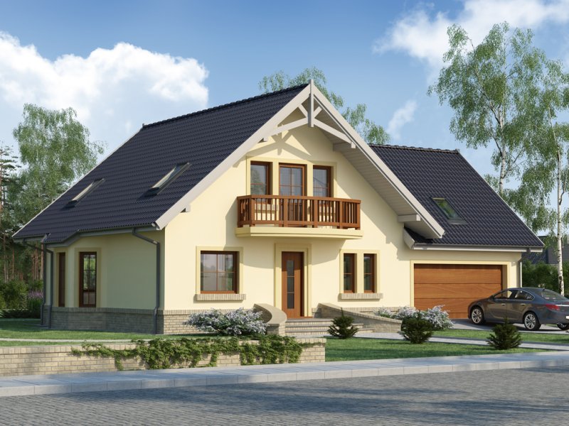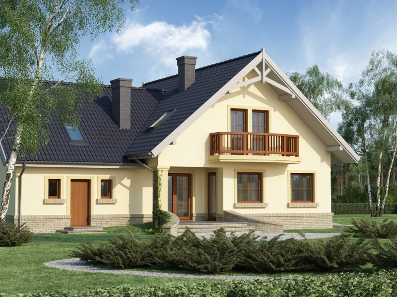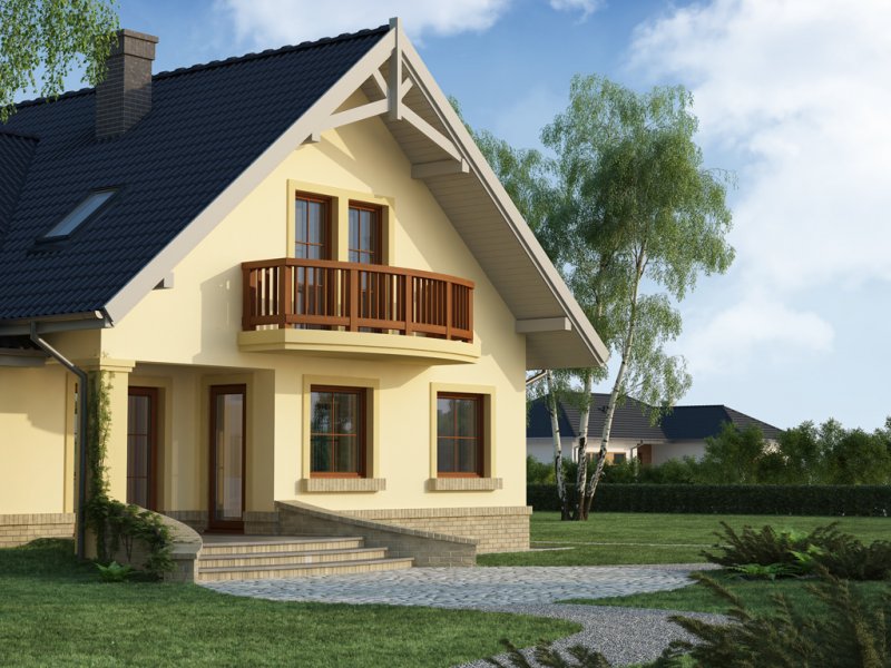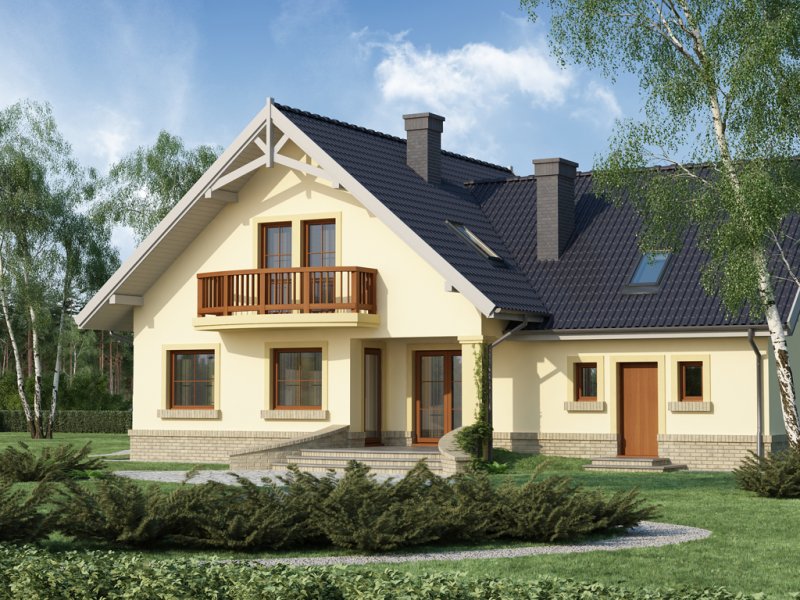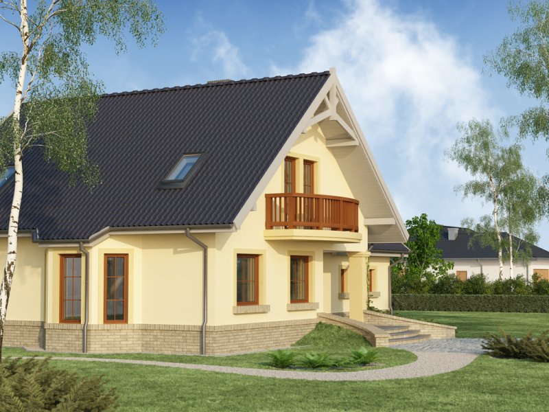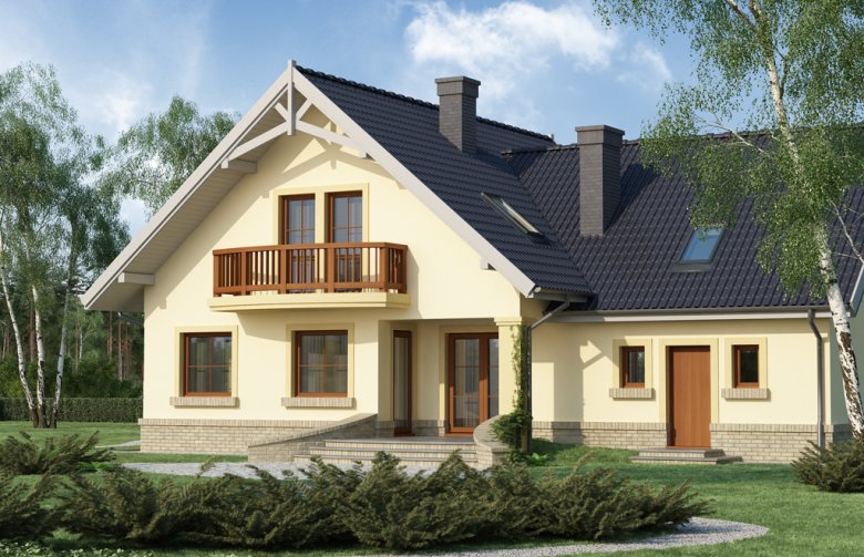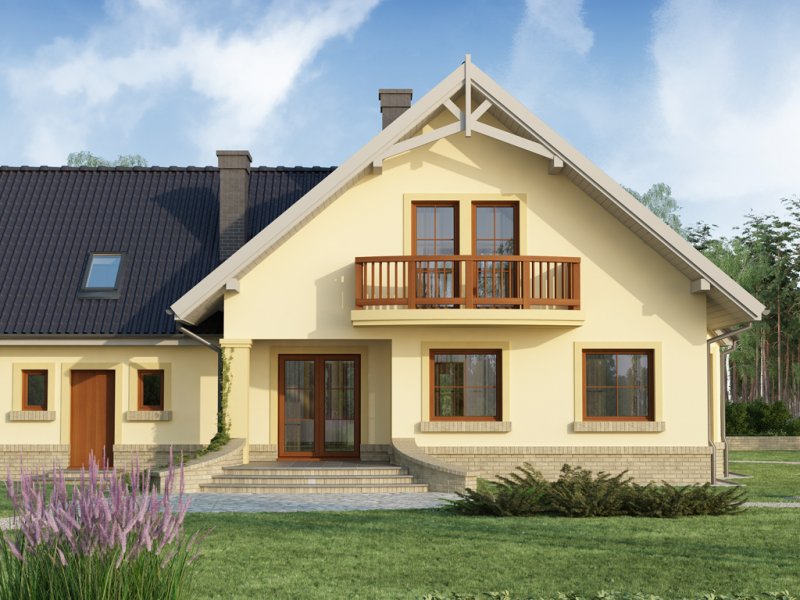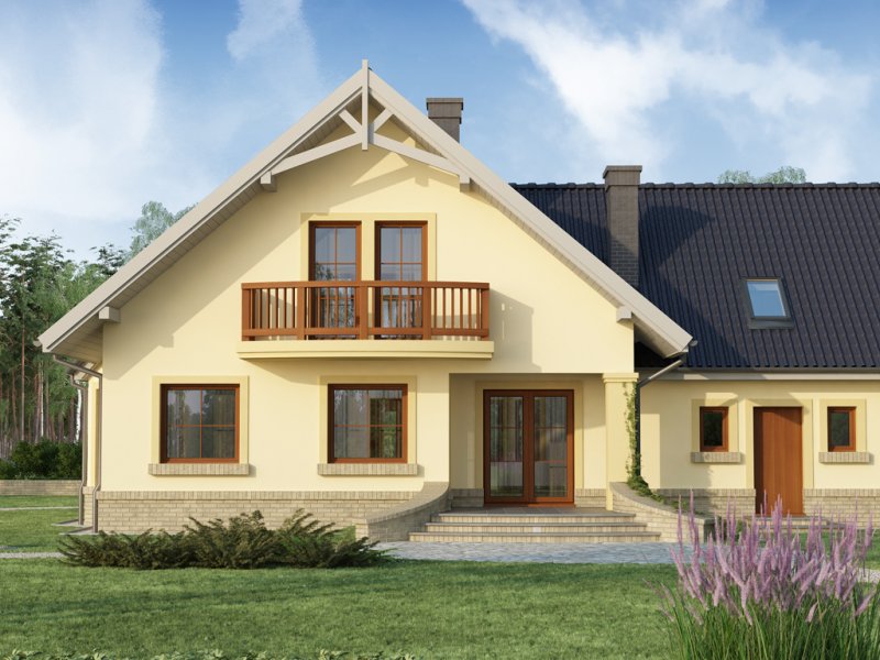 Ciepła kolorystyka materiałów zastosowanych na elewacji i nieskomplikowana bryła domu stanowią o jego uroku, a ekonomiczność zastosowanych rozwiązań konstrukcyjnych przemawia za jego wyborem.