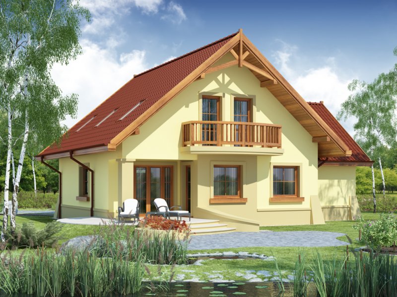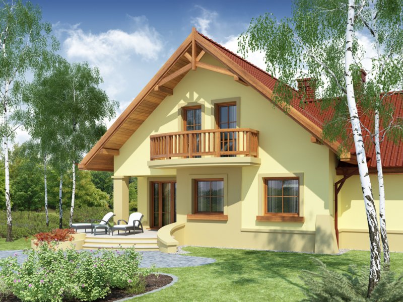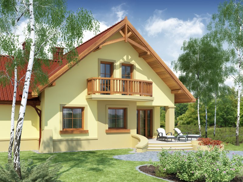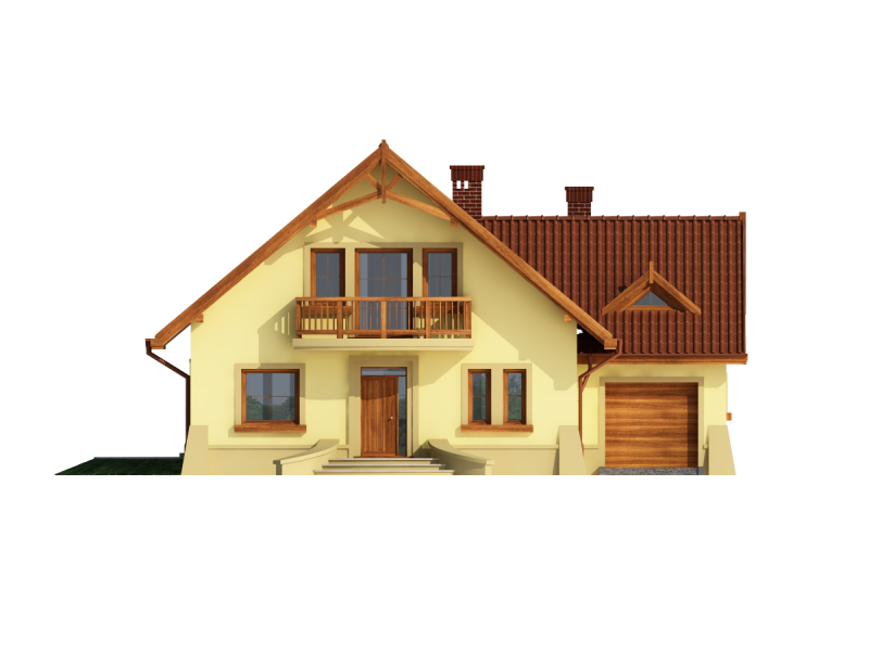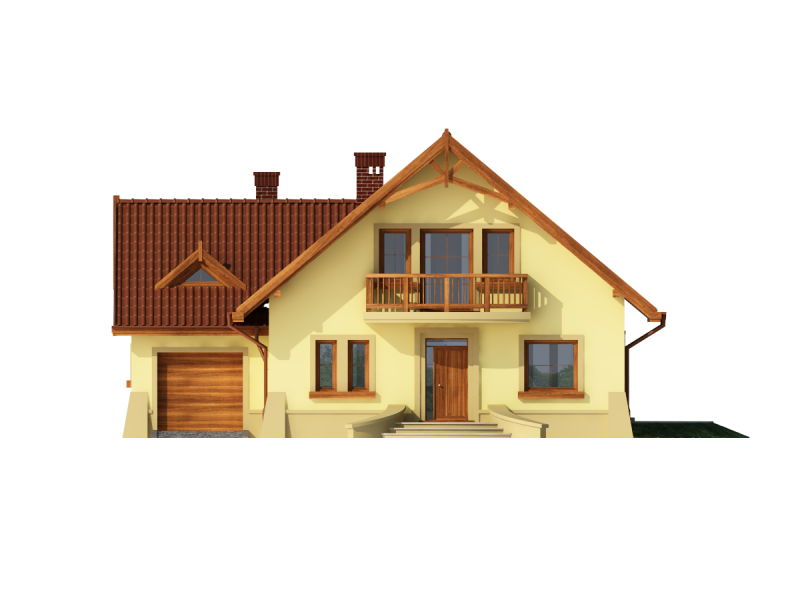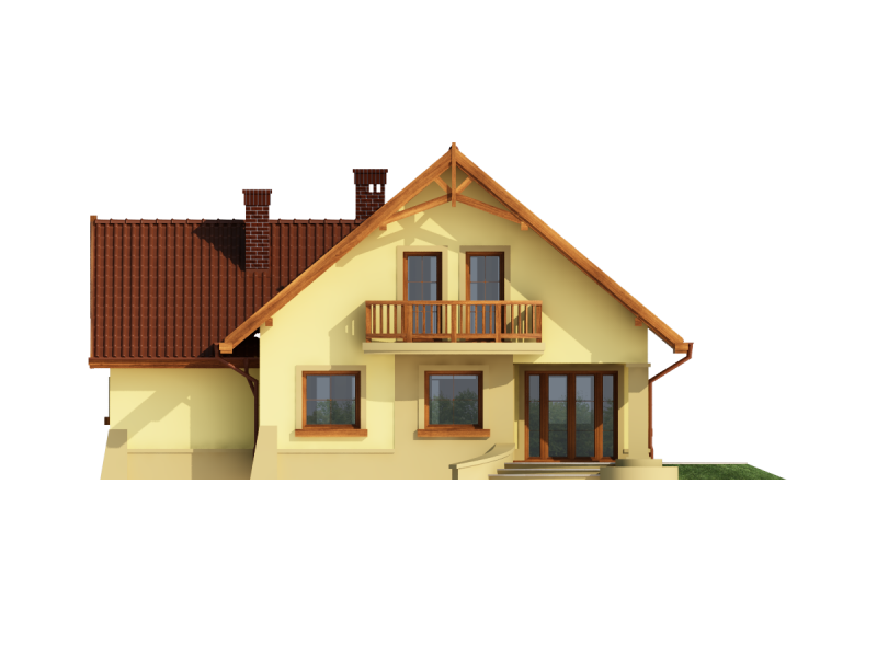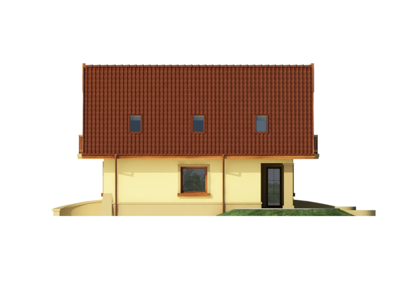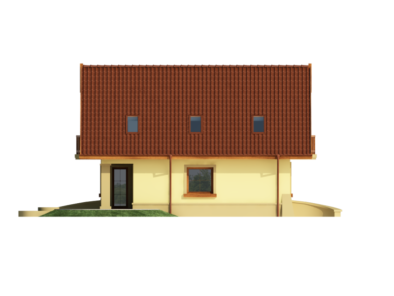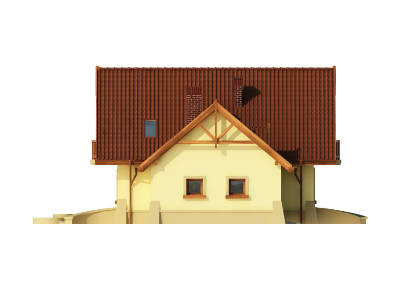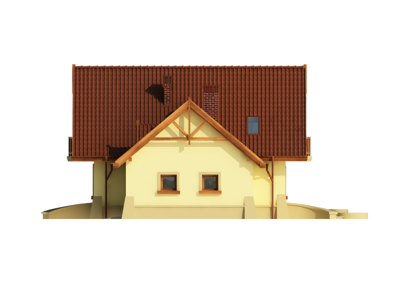 Dom z poddaszem użytkowym, przeznaczony dla 4-5-osobowej rodziny. Na parterze znajduje się przestronny pokój dzienny otwarty na jadalnię połączoną z kuchnią. Rozwiązanie funkcjonalne pozwala na wydzielenie ww. pomieszczeń. Wyjście na taras z podcieniem jest możliwe zarówno z jadalni jak i z pokoju dziennego. Na parterze znajduje się spiżarnia, łazienka oraz dodatkowy pokój, a także pomieszczenie gospodarcze, przez które można się dostać do przestronnego garażu, dającego możliwość zabudowania dwóch ścian szafami. Na poddaszu znajdują się trzy sypialnie, łazienka oraz garderoba. Hol na poddaszu posiada wnękę przeznaczoną na szafę. Nad garażem można zaadaptować strych nieużytkowy dostępny bezpośrednio z klatki schodowej na dodatkowe pomieszczenie gospodarcze lub pokój o powierzchni ponad 13 m2. W ramach adaptacji istnieje mozliwość powiększenia kuchni z jadalnią i tarasu w podcieniu oraz powiększenie i lokalizacja spiżarni bezpośrednio przy kuchni, kosztem dodatkowego pokoju na parterze. Dzięki prostym rozwiązaniom konstrukcyjnym i nieskomplikowanej bryle jest on niedrogi w budowie i eksploatacji. Projekt dostępny w lustrzanym odbiciu oraz w wersji z garażem dwustanowiskowym.