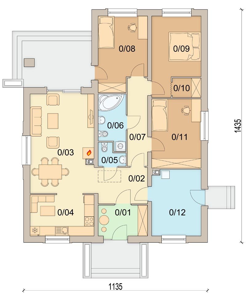 Projekt Imbir 2 to dom parterowy przeznaczony dla 4-5 osobowej rodziny.