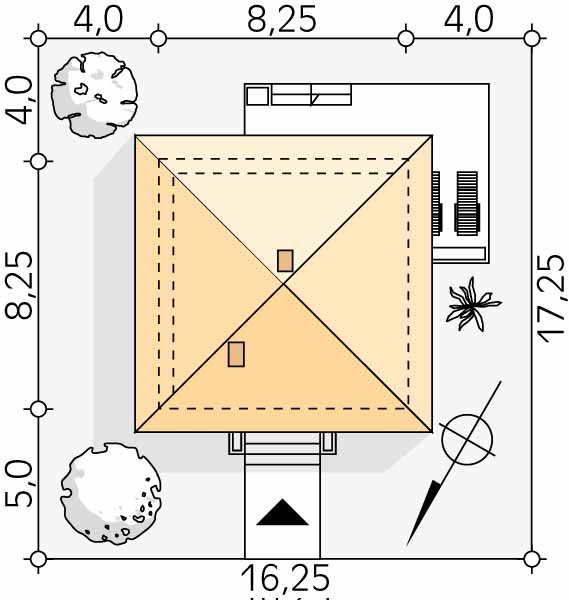 - Min. wymiary działki 16.25x17.25 m