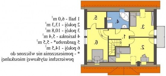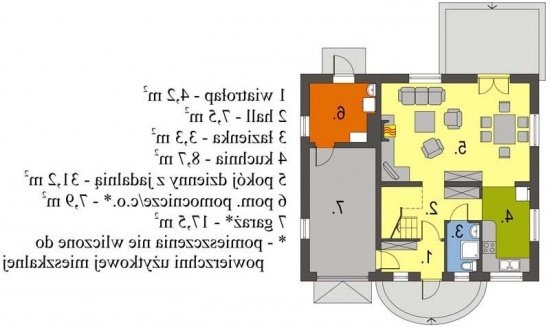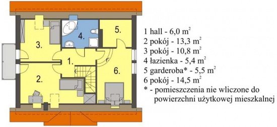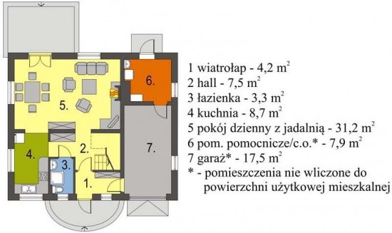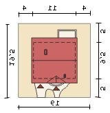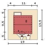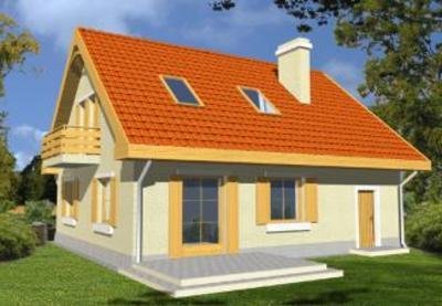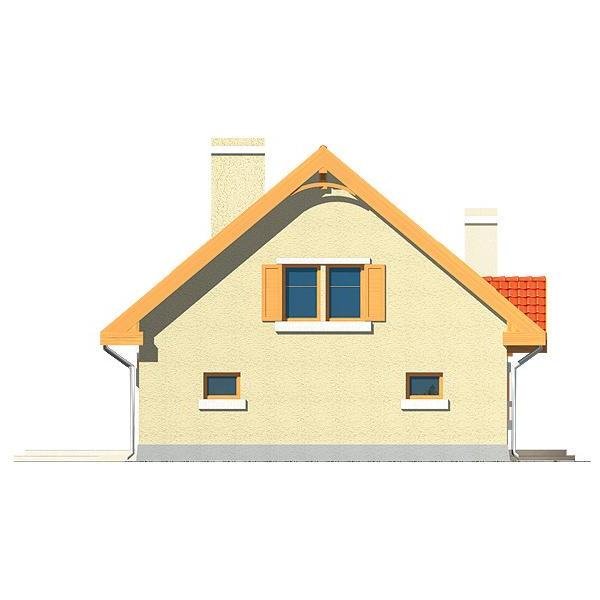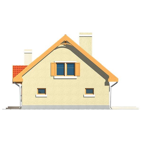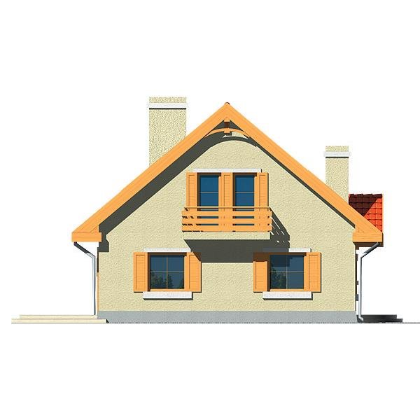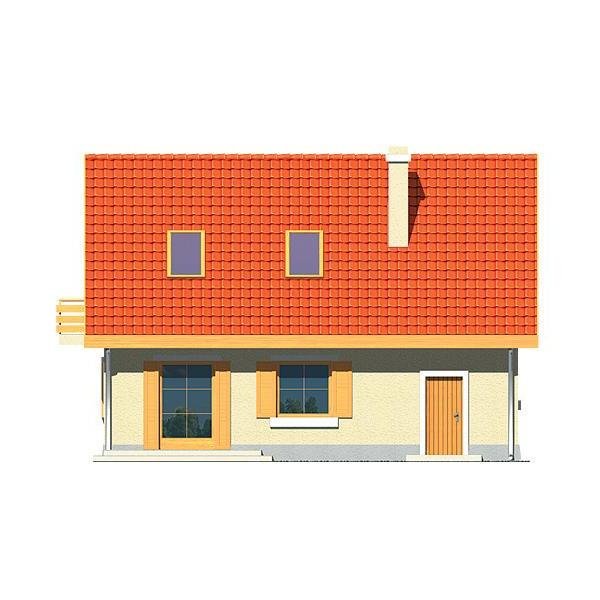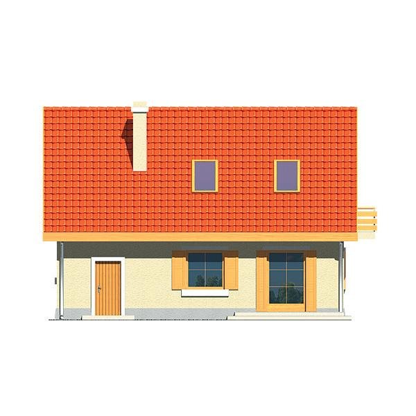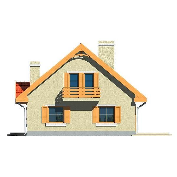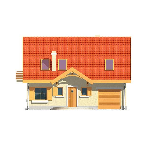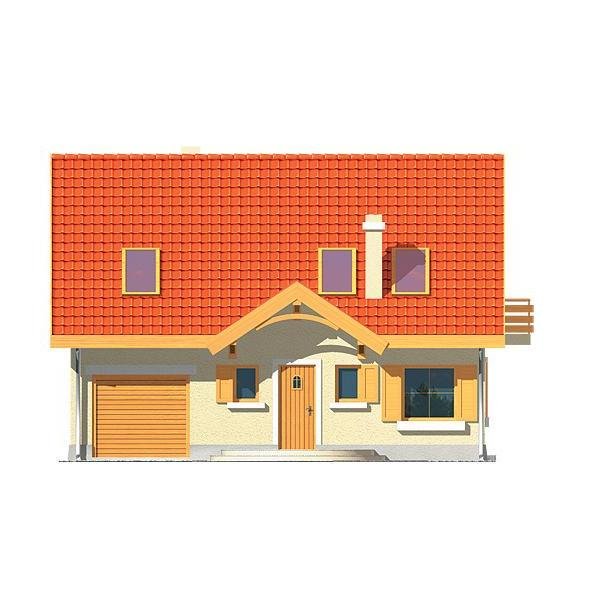 Mały parterowy domek z użytkowym poddaszem i wbudowanym garażem. Prosty niedrogi w budowie. Adresowany jest dla 4 osobowej rodziny. Na parterze znajduje się duży salon z przylegającą do niego kuchnią, a bezpośrednio z wiatrołapu można dostać się do garażu. Zaletą jest również duże pomieszczenie gospodarcze. Poddasze to miejsce z 3-ma sypialniami i wygodną łazienką. Siadając przy kominku iskry rozświetlą i ogrzeją rodzinną atmosferę. Dostępna wersja w lustrzanym odbiciu.