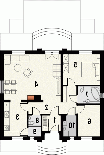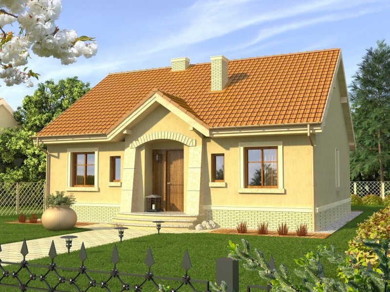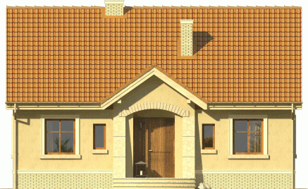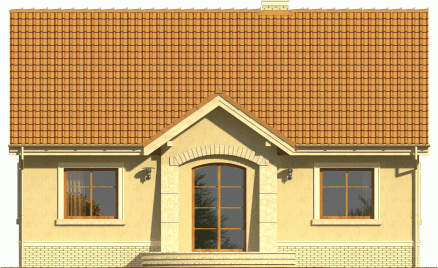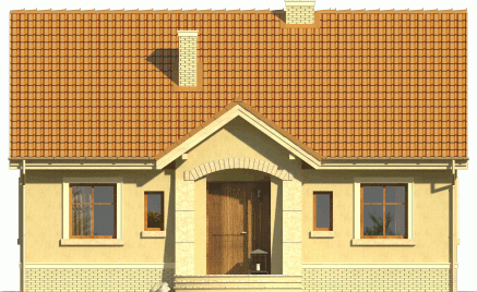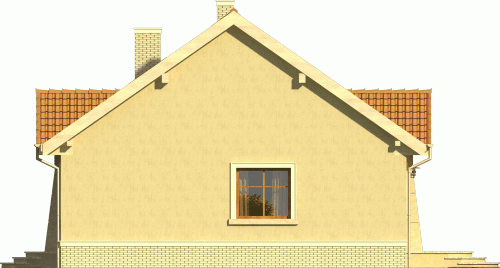 Projekt domu JASPIS P. Tani budynek bez piwnicy, przekryty dachem dwuspadowym nad nieużytkowym poddaszem. Możliwa adaptacja poddasza na cele mieszkalne. Dzięki prostej konstrukcji jest to ciekawa oferta dla osób poszukujących niewielkiego, taniego w realizacji domu. Projekt można nabyć także w wersji odbicia lustrzanego.Rozplanowanie wnętrza. Symetryczna bryła domu skrywa salon z przejściem do kuchni, dwoma sypialniami, łazienką, osobnym wc, pomieszczeniem gospodarczym oraz spiżarką przy kuchni. Po adaptacji poddasza można uzyskać dodatkowe 2 pokoje.Technologia budowy domu. W projekcie zaproponowano ściany z pustaków gazobetonowych ze styropianem z opcją zmiany materiału na etapie adaptacji. Nad parterem zaprojektowano strop gęstożebrowy. Więźba jest drewniana, a pokrycie dachówką ceramiczną albo betonową. Elewacje są w całości pokryte tynkiem.
