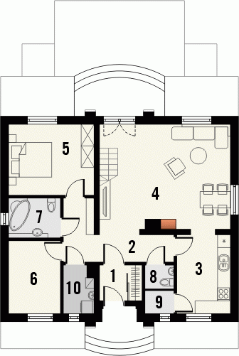 W projekcie zaproponowano ściany z pustaków gazobetonowych z opcją zmiany materiału na etapie adaptacji. Nad parterem zaprojektowano strop gęstożebrowy. Więźba jest drewniana, a pokrycie dachówką ceramiczną albo betonową. Elewacje są w całości pokryte tynkiem.