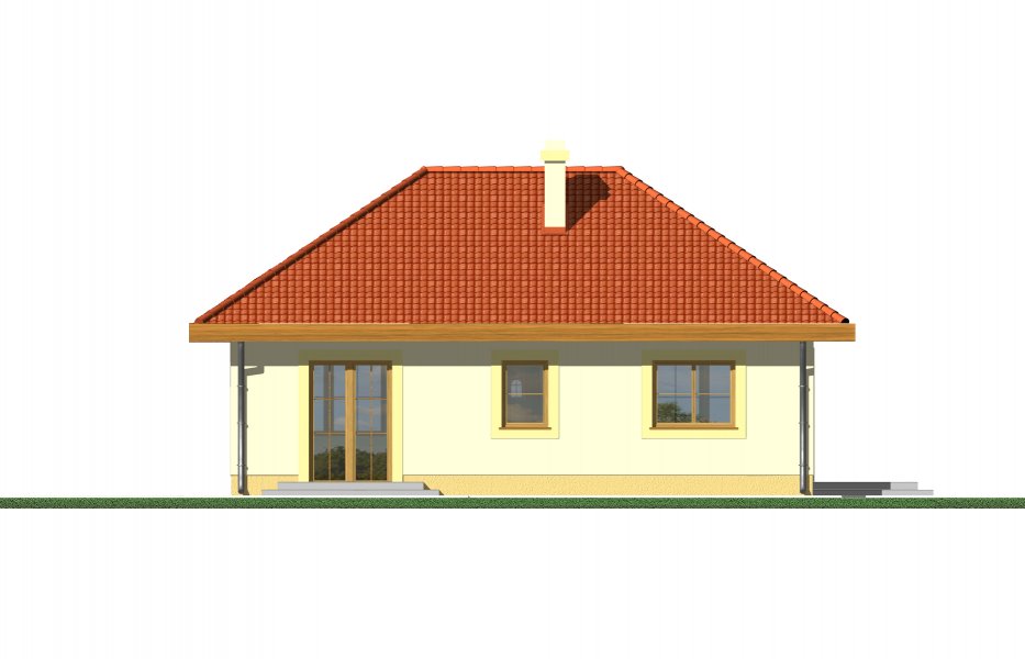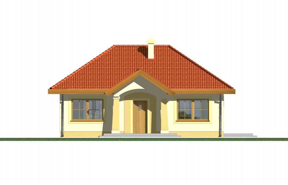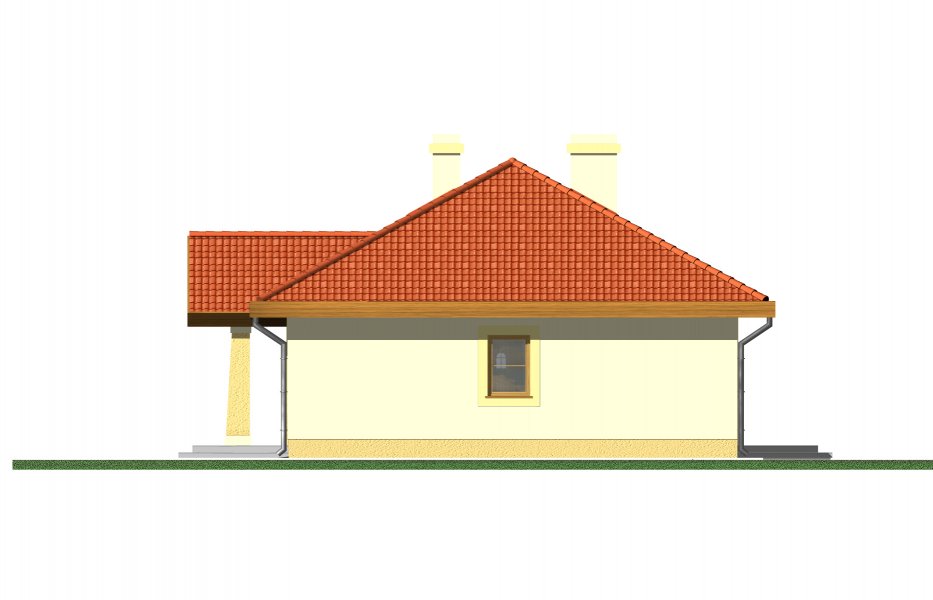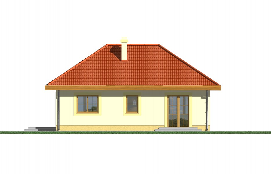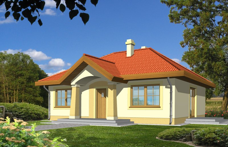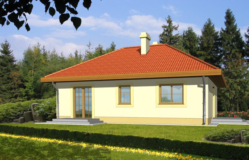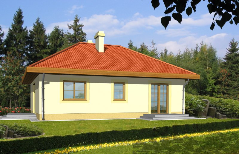 Mały parterowy niepodpiwniczony domek, o prostej bryle. Strefa dzienna to przestrzeń gdzie kuchnia połączona jest z jadalnią i pokojem dziennym, w której będziemy spędzać większość czasu. Dwie sypialnie przedzielone łazienką są miejscem odpoczynku gospodarzy domu. Dostępna wersja z garażem i w lustrzanym odbiciu