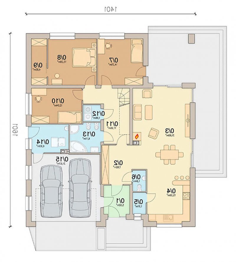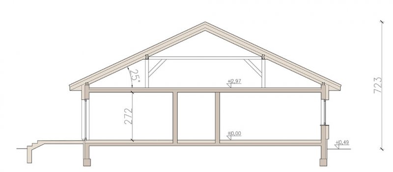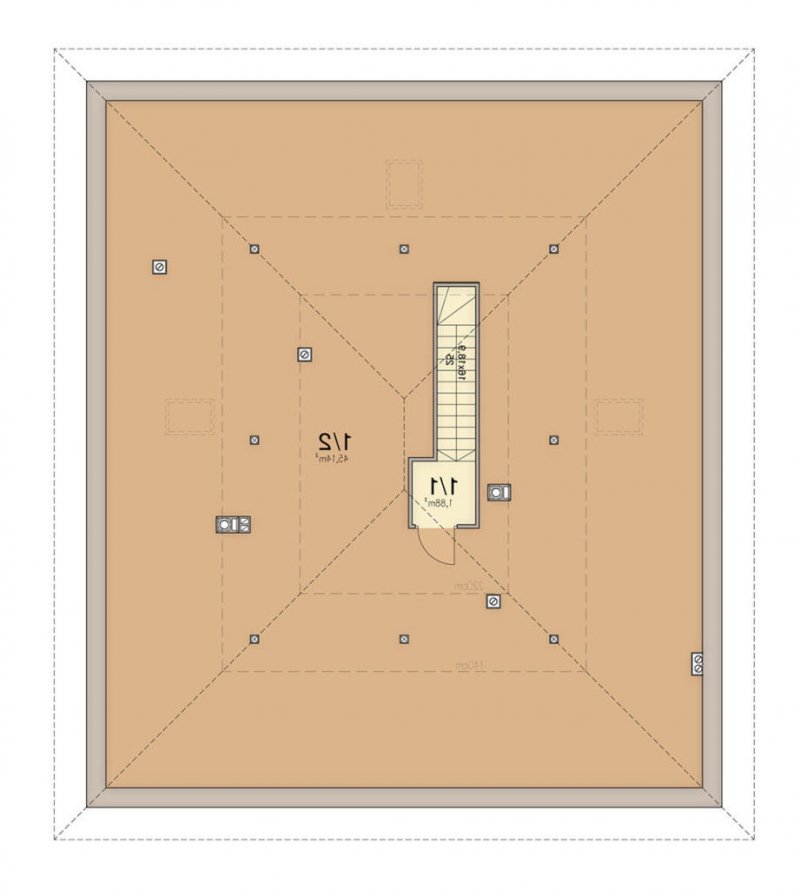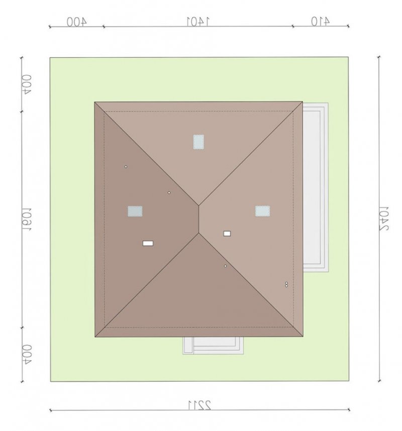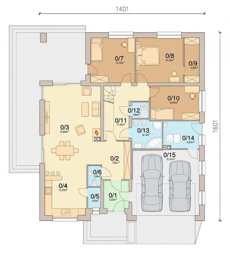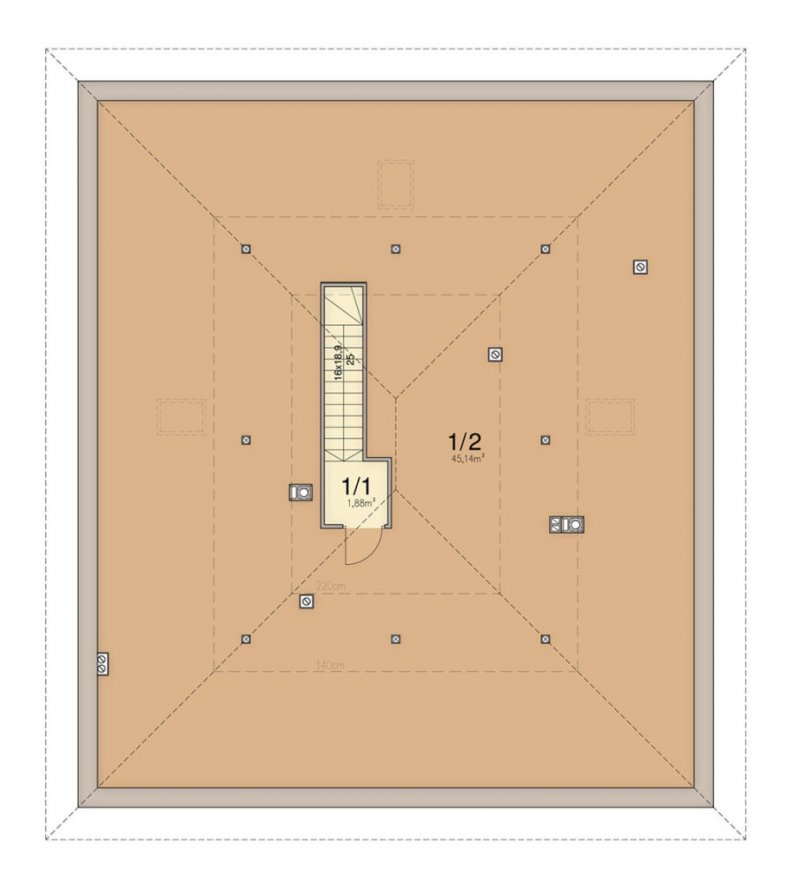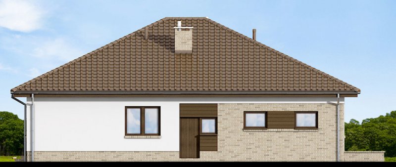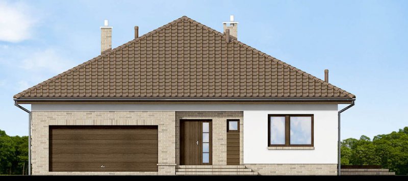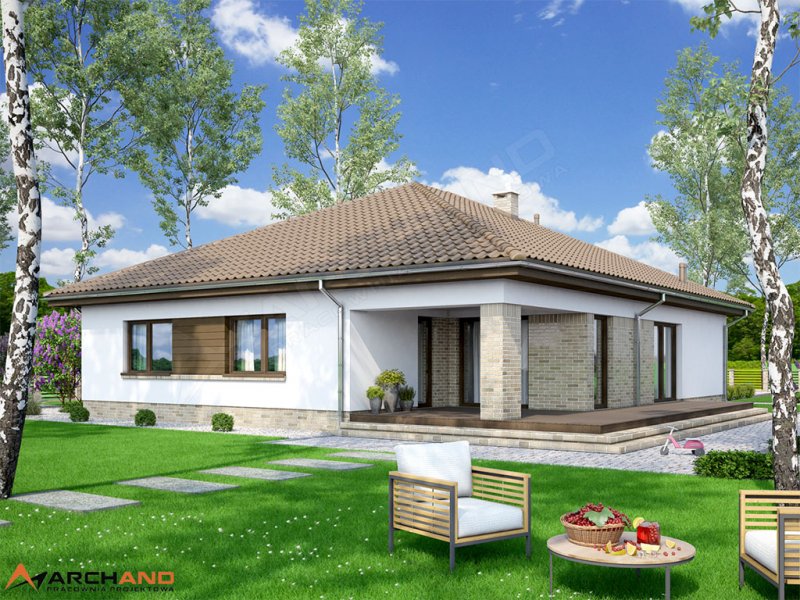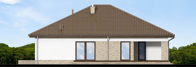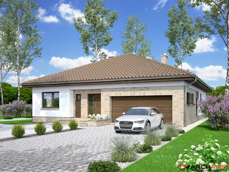 Kalwados to dom parterowy, przeznaczony dla 3-5 osobowej rodziny. Prosta, foremna bryła w połączeniu z naturalnymi materiałami, nadają mu lekkości i elegancji, oraz sprawiają wrażenie ciepłego i przytulnego. Kalwados oferuje komfortowe pokoje, spiżarnię, garderobę, pralnię, dodatkową toaletę, dużą kotłownię, oraz dwustanowiskowy garaż. Dzięki dobrze zagospodarowanej przestrzeni, dom będzie bardzo wygodny w użytkowaniu. Na uwagę zasługuje duży zadaszony taras, dostępny z salonu i sypialni. Pomieszczenia rozplanowano w taki sposób, aby sypialnie i łazienka oddzielone były od reszty domu drzwiami. Tworzy to podział na strefę dzienną i nocną. W tej pierwszej zlokalizowano przestronny salon z jadalnią, oraz dużą kuchnię ze spiżarnią. W części nocnej zlokalizowano trzy sypialnie, łazienkę, garderobę i pralnię. Aby ułatwić adaptację strychu, zaprojektowano schody na poddasze. Kotłownie zaprojektowano na paliwo stałe i oddzielono ją od części mieszkalnej garażem. Dodatkowo przewidziano również instalację gazową dla osób chcących korzystać z ogrzewania gazowego. W projekcie zastosowano wyłącznie typowe i sprawdzone rozwiązania, co znacznie ułatwi realizację. Aby zapewnić niskie koszty eksploatacji i nie zwiększać kosztów budowy, przewidziano rozwiązania energooszczędne na poziomie ekonomicznie uzasadnionym.