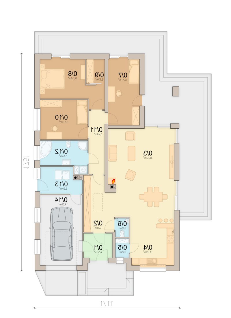 Na uwagę zasługuje duży zadaszony taras, dostępny z salonu i sypialni.