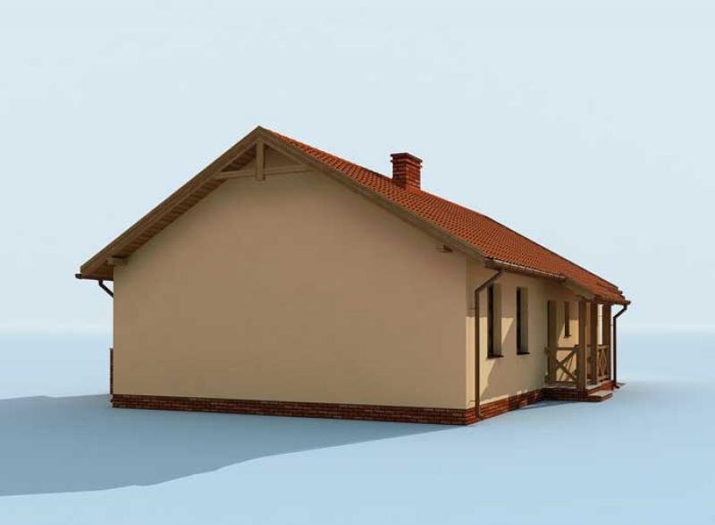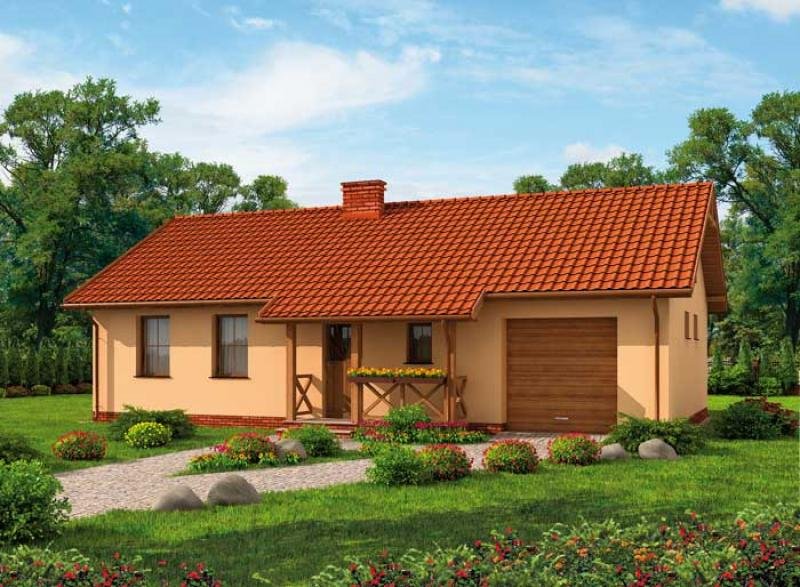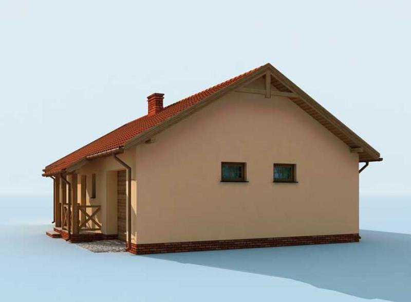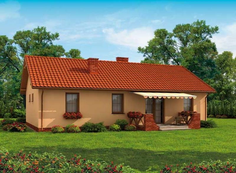 Kampala Jest niedużym, ale i zarazem nietuzinkowym, parterowym domkiem letniskowym. Może także stać się budynkiem całorocznym, zaspokajającym potrzeby rodziny. Z zewnątrz od strony północnej dom przykuwa uwagę tarasem, na którym możemy spędzić mile czas, korzystając z pięknej pogody i uroków miejsca. Wejście do domu znajduje się na południu, zaś wejście na taras na południu. Niewątpliwą zaletą tego domku są drewniane wykończenia, nadające mu tradycyjny, ciepły wygląd. Poza nim dom posiada garaż oraz użyteczne pomieszczenie gospodarcze. Wejście główne prowadzi nas przez wiatrołap, do komunikacji, skąd możemy skierować nasze kroki do dowolnego pomieszczenia domu. W projekcie przewidziano miejsce na dwie intymne, sąsiadujące ze sobą sypialnie, oddzielone od pozostałych pomieszczeń. W samym centrum domku umieszczona została funkcjonalna łazienka. Taka lokalizacja sprzyja korzystaniu z niej, zarówno w ciągu dnia, jak i w nocy. Pokój dzienny z kolei może stać się jednocześnie jadalnią, ponieważ został umiejętnie połączony z miejscem przeznaczonym na aneks kuchenny. Co ciekawe, z tego pomieszczenia możemy wyjść na obszerny taras i tam spożywać posiłki. Zastosowany układ pomieszczeń, okaże się zapewne bardzo funkcjonalny, kiedy urządzimy grilla czy innego rodzaju fetę podczas letniego wypoczynku. Jest to, słowem, projekt warty szczególnej uwagi. Projekt składa się z części architektonicznej, konstrukcyjnej, wewnętrznych instalacji wod.-kan, c. o. , gaz. i elektrycznej. W projekcie załączone są podstawowe zestawienie stali, drewna i stolarki okienno-drzwiowej. Do projektu dołączamy bezpłatną zgodę na wprowadzenie zmian, oświadczenie projektantów o wykonaniu projektu zgodnie z obowiązującymi normami i przepisami oraz kserokopie uprawnień projektantów wraz z aktualnym wpisem do izby. W przypadku zamówienia projektu w technologii lekkiej, drewnianej konstrukcji szkieletowej, powierzchnia użytkowa budynku jest o około 7% większa.