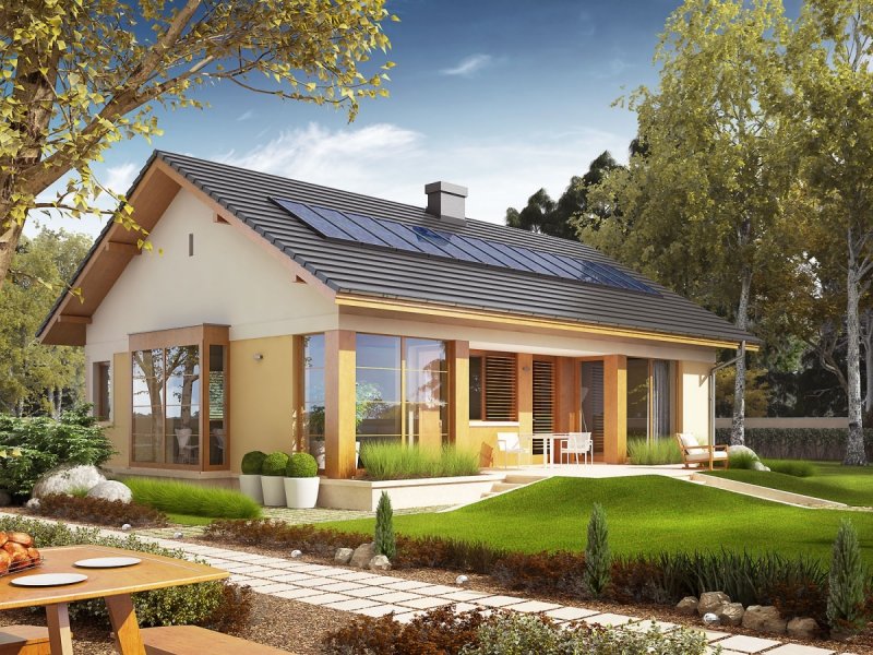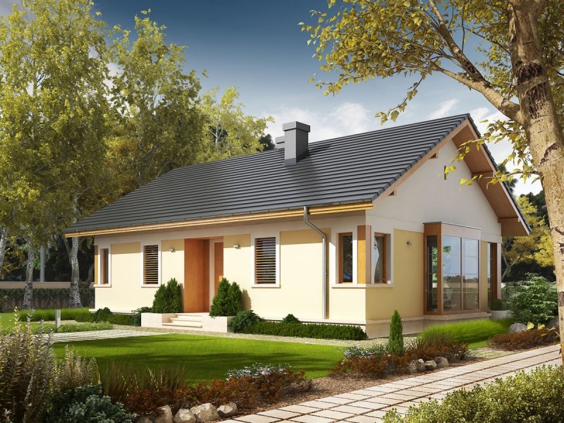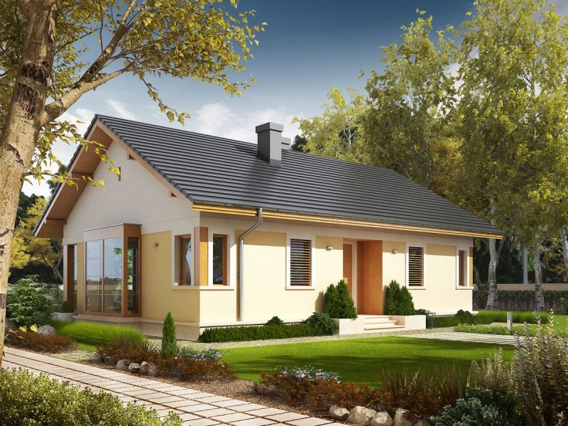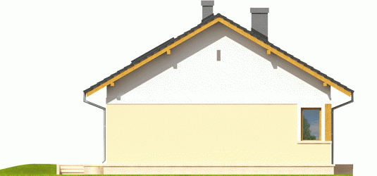 Dom parterowy, niepodpiwniczony. Przeznaczony dla 2-3-osobowej rodziny. Strefę dzienną tworzy salon z kominkiem, kuchnia oraz wydzielona jadalnia. Dodatkowo, dom posiada dużą łazienkę oraz praktyczne pomieszczenie gospodarcze z kotłem grzewczym, w którym wygospodarować można również pralnię lub spiżarnię. Strefa nocna to dwie wygodne sypialnie. Karmela to dom, który powstał z myślą o inwestorach, którzy cenią wygodę i klasyczne piękno. Zwarta bryła i prosty dwuspadowy dach sprawiają, że dom jest ekonomiczny w realizacji i późniejszej eksploatacji. Na stosunkowo niewielkiej powierzchni udało się zaprojektować komfortowy układ funkcjonalny. Z zewnątrz budynek prezentuje się równie urzekająco – ciepła kolorystyka elewacji w parze z elegancją detali podkreślają przytulny charakter czarującej Karmeli. Istnieje możliwość: - zbliźniaczenia - wykonania domu dwulokalowego