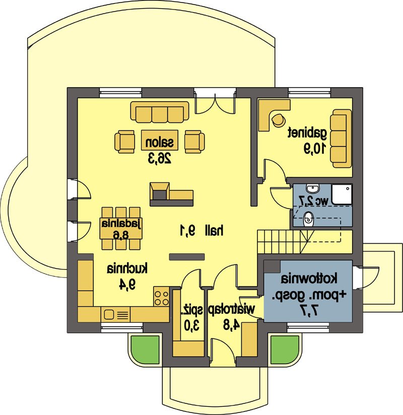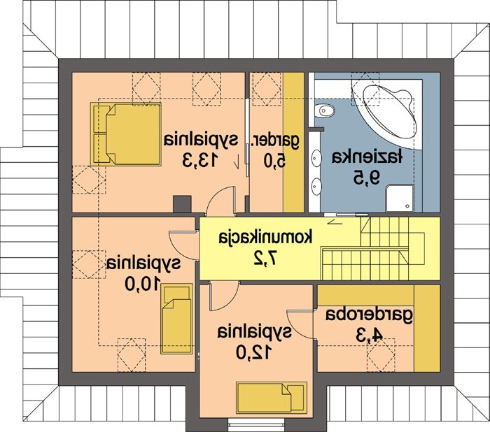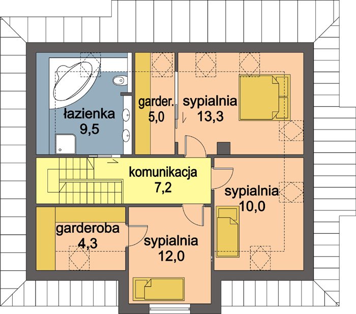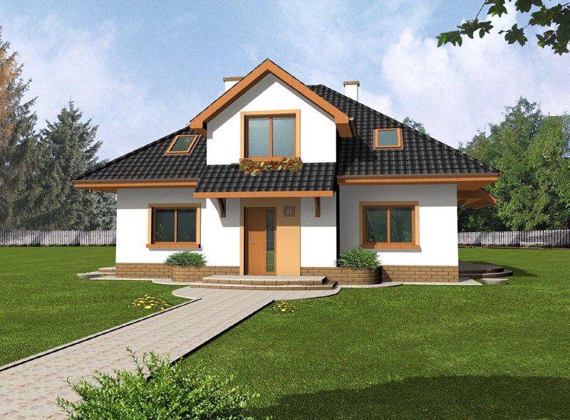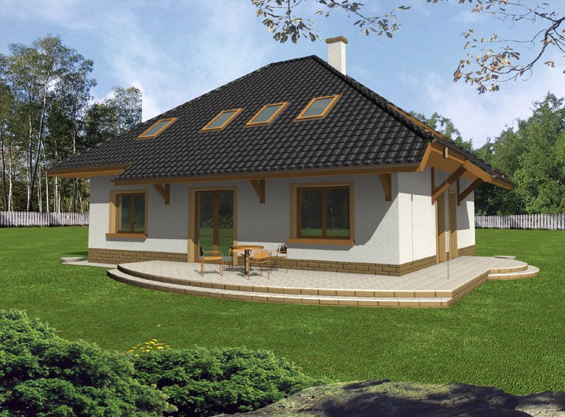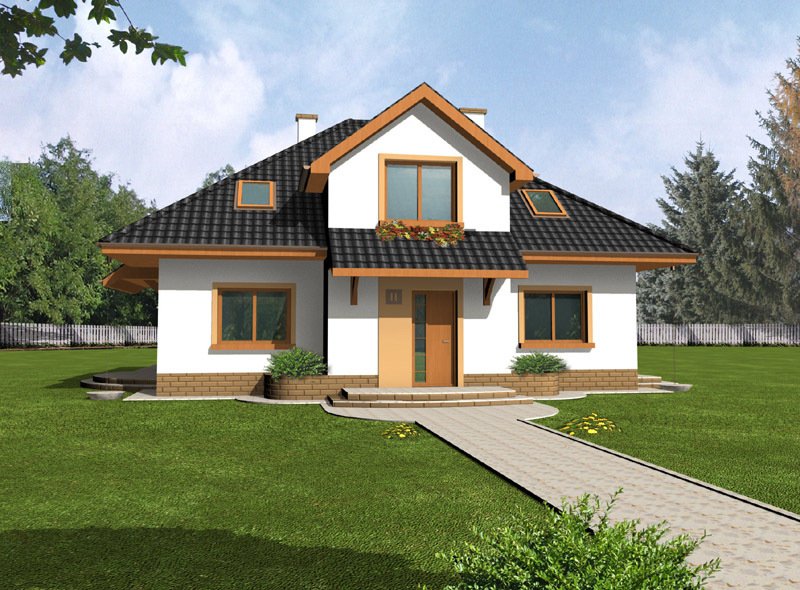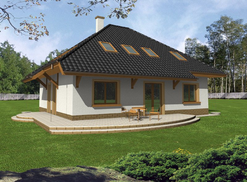 Kasia to bardzo wygodny, reprezentacyjny dom parterowy z użytkowym poddaszem, przeznaczony dla rodziny o schemacie 2+ 2 lub 2+3.
