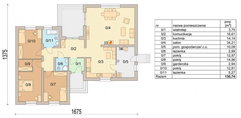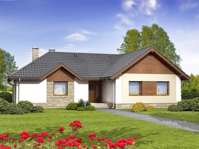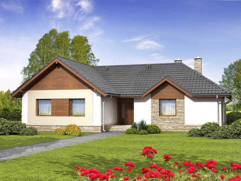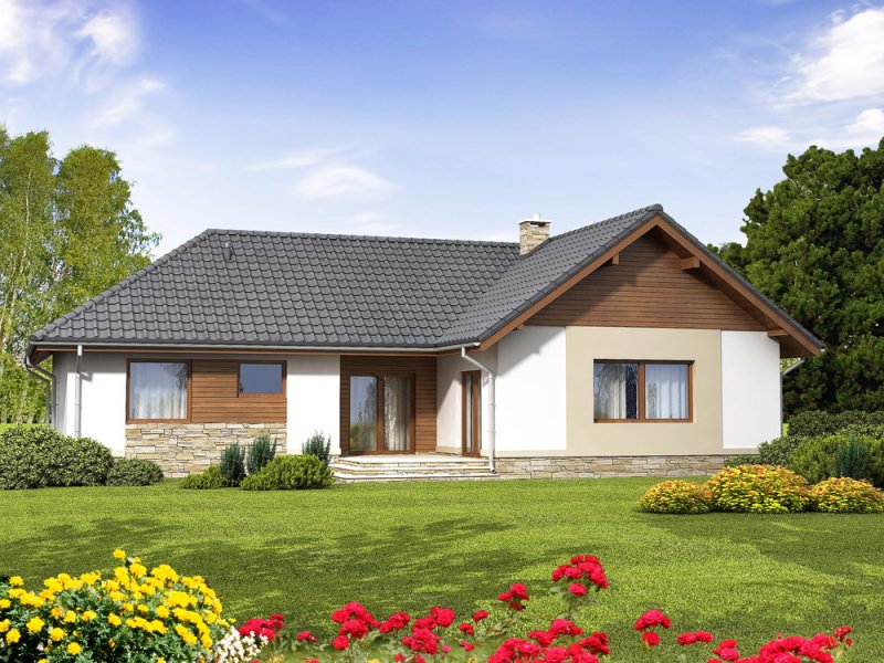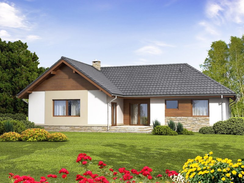 Projekt Kokos odznacza się atrakcyjnym, nowoczesnym wyglądem, a przy tym ciepłym i przytulnym charakterem. Dom posiada duże pomieszczenia, ma wydzielone strefy, a jego wielkość pozostaje na racjonalnym poziomie. Dom ten jest komfortowy i elegancki, przeznaczony dla 4-5 osobowej rodziny. Cechą charakterystyczną projektu są wydzielone dwa skrzydła. Jedno przeznaczone jest na część nocną, a drugie na dzienną. Aby zapewnić komfort wszystkim domownikom, obie strefy zostały rozdzielone centralnie umieszczonym holem. Jest to jasne pomieszczenie z którego rozpościera się widok na ogród, a goście mogą przejść bezpośrednio na przyjęcie odbywające się na tarasie.