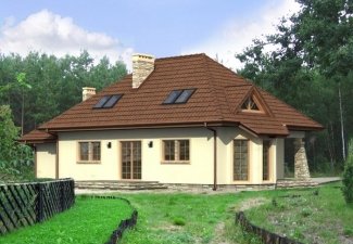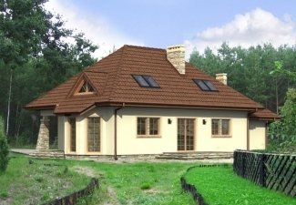 * Przestronny jednorodzinny dom parterowy, z użytkowym poddaszem i garażem jednostanowiskowym (istnieje wersja dwustanowiskowa), niepodpiwniczony