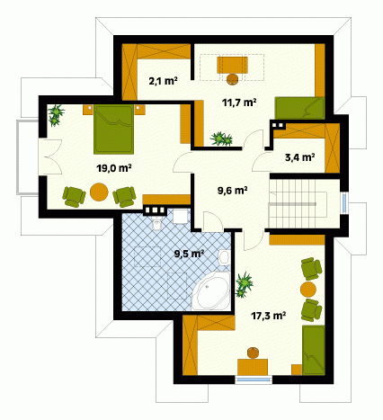 Dom jednorodzinny, parterowy z użytkowym poddaszem, niepodpiwniczony. Dom dla 4 – 5-osobowej rodziny. Na parterze dodatkowy pokój z łazienką. Na poddaszu dwie przestronne sypialnie.
