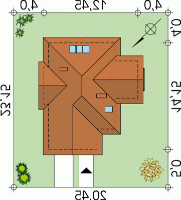 - Kąt nachylenia dachu 45.00°