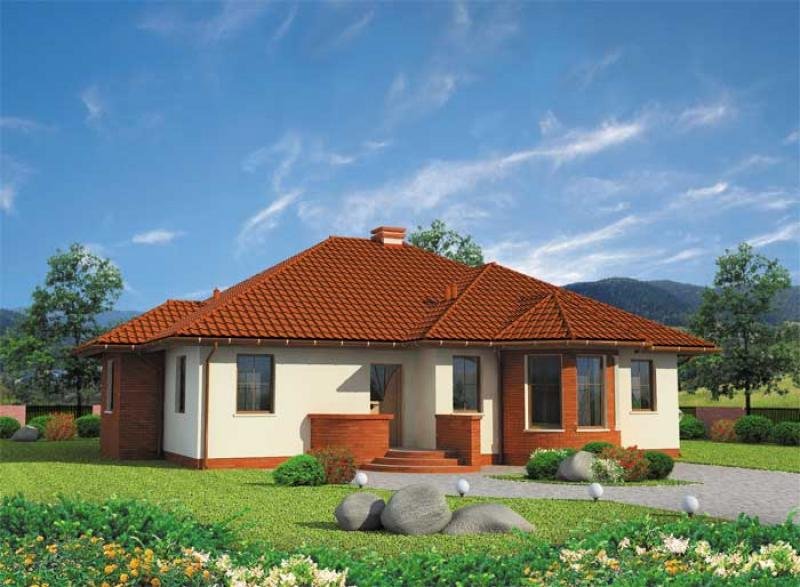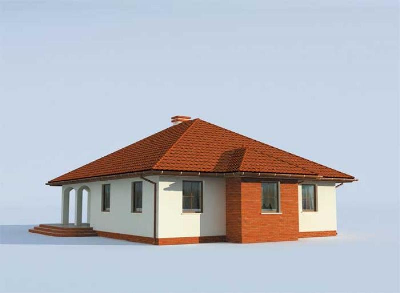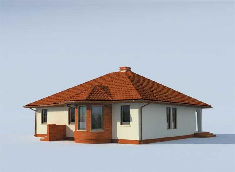 "La Paz" To niewielki, parterowy, niepodpiwniczony domek z możliwością adaptacji kotłowni na węgiel. Elewacja frontowa została pomyślana tak, by wejście do domu wkomponować pomiędzy półokrągły ryzalit a okno sypialni. Elewacja boczna również zaskakuje niewielkim ryzalitem wykończonym cegłą, tworzącym dodatkową przestrzeń niezbędną, by powstała obszerna łazienka. Do domu wchodzimy przez wiatrołap. Wewnątrz przewidziano duży hall, który zapewnia odrębność wszystkim pomieszczeniom. Wschodnią część domu zajmują pomieszczenia, z których korzystamy w ciągu dnia – mamy tu przede wszystkim kuchnię z wydzielonym miejscem na jadalnię, którą można urządzić w półokrągłym ryzalicie oraz obszerny pokój dzienny z dwoma wyjściami na taras. Dla tej części domu przewidziana została mniejsza łazienka z miejscem na prysznic. Zachodnia część domu stanowić będzie natomiast część przeznaczoną głównie do użytku domowników. Z niewielkiej komunikacji, można przejść do jednego z wielu pomieszczeń. Przewidziano tutaj bowiem miejsce na kotłownię, z którą sąsiaduje pokój posiadający wyjście na taras. W zachodnio-północnym narożniku domu mamy kolejny pokój, przeznaczony najprawdopodobniej dla dziecka. Największy pokój w tej części domu to sypialnia. Te trzy pomieszczenia mają bezpośredni dostęp do większej łazienki, której część została umieszczona w ryzalicie z boku domu. Mamy tutaj miejsce na wannę. Ten właściwie niewielki domek jest projektem niezwykle funkcjonalnym, stanowiącym rozwiązanie w miarę niedrogie, ale wygodne rozwiązanie dla czteroosobowej rodziny. Projekt składa się z części architektonicznej, konstrukcyjnej, wewnętrznych instalacji wod.-kan, c. o. , gaz. i elektrycznej. W projekcie załączone są podstawowe zestawienie stali, drewna i stolarki okienno-drzwiowej. Do projektu dołączamy bezpłatną zgodę na wprowadzenie zmian, oświadczenie projektantów o wykonaniu projektu zgodnie z obowiązującymi normami i przepisami oraz kserokopie uprawnień projektantów wraz z aktualnym wpisem do izby. W przypadku zamówienia projektu w technologii lekkiej, drewnianej konstrukcji szkieletowej, powierzchnia użytkowa budynku jest o około 7% większa.